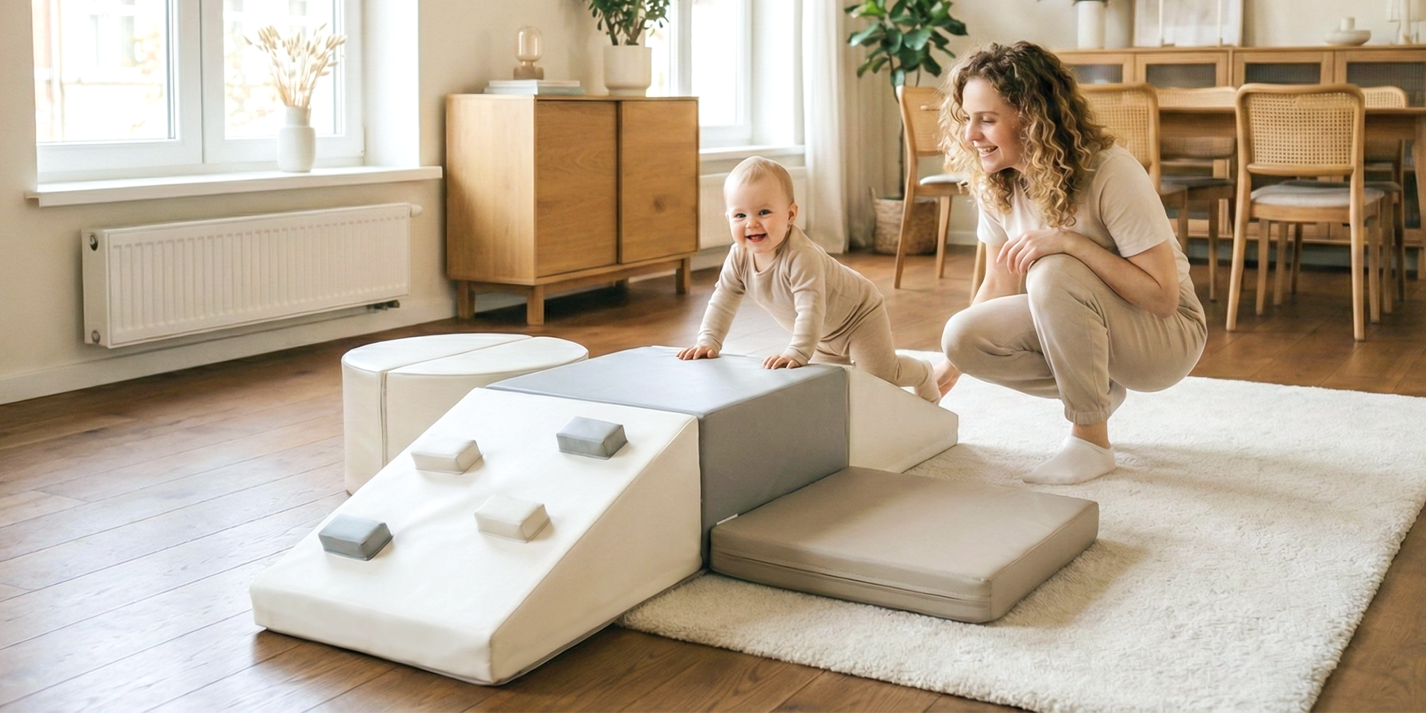Olakids Pikler Triangle Set, 13 in 1 Astronaut Theme Foldable Wooden Montessori Toddler Climbing Toys