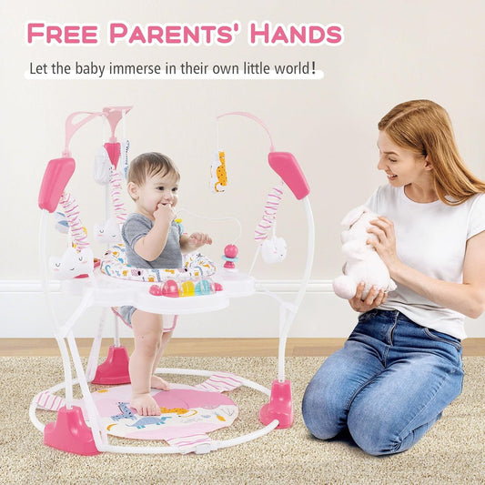 OLAKIDS Baby Activity Center, 3 in 1 Play Center Jumpers and Bouncers with Music, Lights, Interactive Toys, 360°Rotating Seat, 3 Adjustable Heights, Exersaucer Learning Toys for Baby 6-12 Months