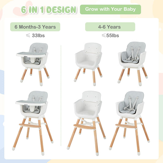 OLAKIDS Baby High Chair, 6 in 1 Convertible Wooden Highchair, Infant Feeding Chair