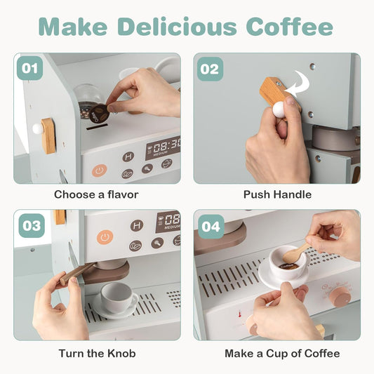 OLAKIDS Grocery Store Playset, Kids Play Store, Wooden Supermarket Playset with Cash Register, Coffee Machine Vending Machine, Play Food Accessories, Pretend Play Store Gift for Toddler Boys Girls