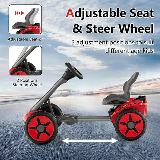 OLAKIDS Go Kart for Kids, 12V Battery Ride On Car with Adjustable Seat and Steering Wheel, Folding Wheel, Detachable Cup Holder, LED Light, Electric Go Cart for Ages 2-5 Years (Red)