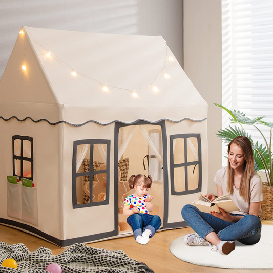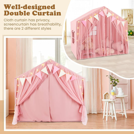 OLAKIDS Kids Play Tent, Large Size Playhouse with Washable Cotton Mat Star Light Windows Plaid Pennants, 57.5” x 38” x 52.5”, Indoor Outdoor Princess Tents Castle for Toddlers Age 3+ Years Old
