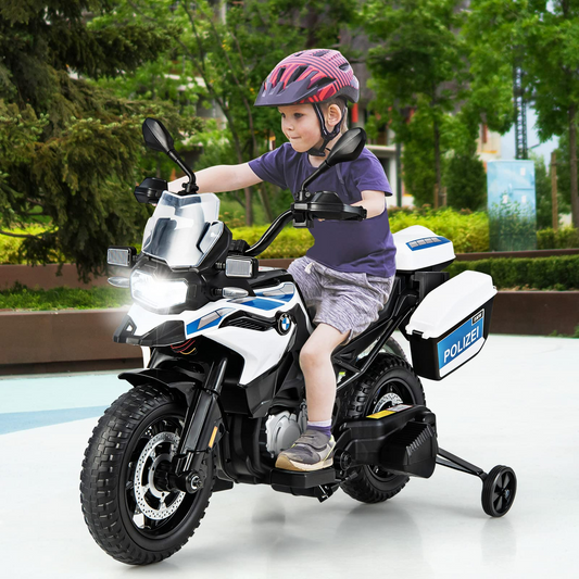 OLAKIDS Kids Motorcycle, 12V Licensed BMW Electric Ride on Police Dirt Bike with Training Wheels