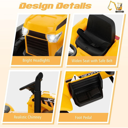 OLAKIDS Kids Ride on Car, 12V Electric Excavator Vehicle Construction Truck with Remote Control, Adjustable Bucket, Toddlers Battery Powered Bulldozer Tractor with 2 Speeds, Music, Bluetooth, USB, MP3