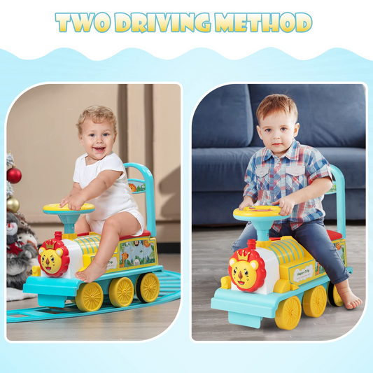 OLAKIDS Kids Ride on Train with Track, 6V Electric Toy with Lights and Sounds, Retractable Footrest, Under Seat Storage, Christmas Theme Battery Powered Gift for Toddlers Boys Girls