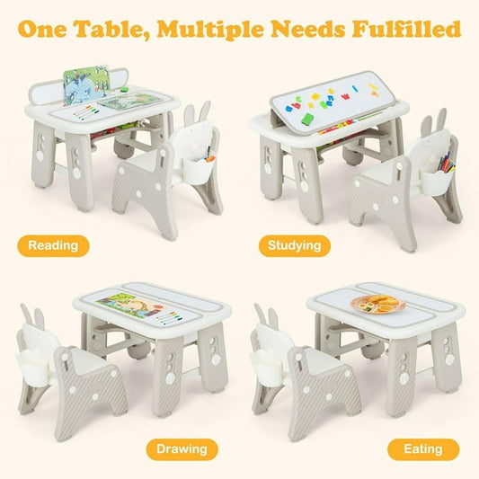 INFANS Kids Table and Chair Set, 3 in 1 Wooden Activity Table with Removable Tabletop