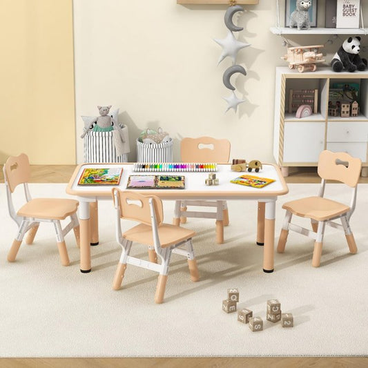 INFANS Kids Table and Chiar Set, Height Adjustable Toddler Desk and 4 Chairs with Graffiti Desktop Non-Slip Legs, Large 47" L x 23.5" W Multi-Activity Art Table for Daycare Classroom Home