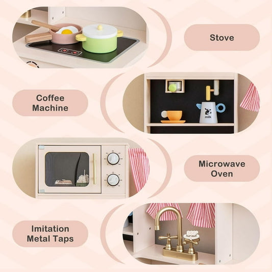 INFANS Kids Kitchen Playset, Cooking Toy Kitchen Set with Coffee Machine Stove Removable Sink Microwave Storage Cabinet, Simulation Wooden Play Kitchen for Toddler Boys Girls