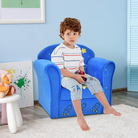 INFANS Kids Sofa, Toddler Armchair Chair with Sturdy Wood Construction Cartoon Pattern, Upholstered Children Armrest Couch for Nursery Kindergarten Playroom Preschool, Gift for Boys Girls