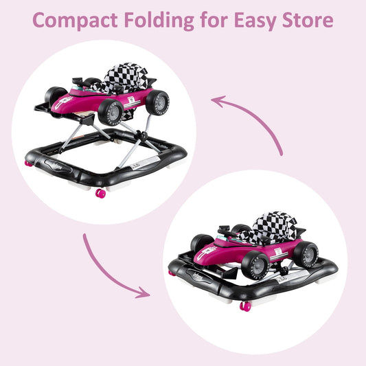 OLAKIDS 4 in 1 Baby Walker, Foldable Toddler Activity Center with Adjustable Height, Padded Seat, Music, Light, Removable Toy Tray, Push Walker for Girls Boys Aged 6-18 Months