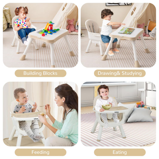 OLAKIDS 6 in 1 Baby High Chair, Convertible Highchair for Babies and Toddlers, Building Block Table