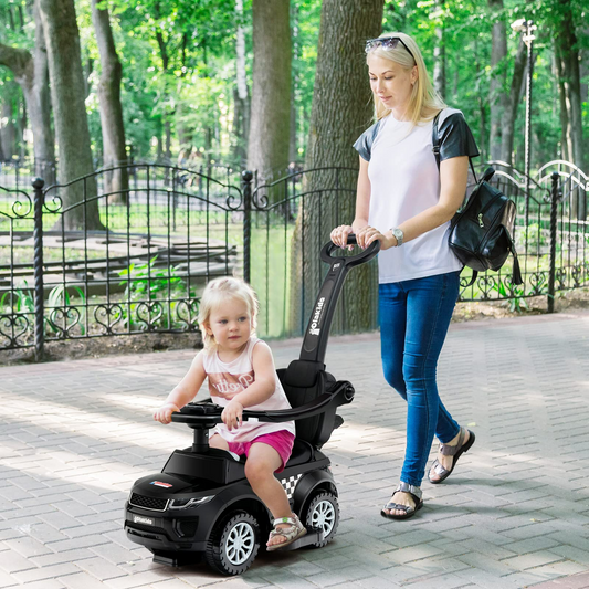 OLAKIDS 4 in 1 Ride on Push Car, Toddlers Stroller Sliding Walking Toy with Horn, Music, Lights, Removable Guardrails and Handle