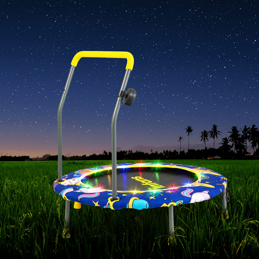 OLAKIDS 36" Foldable Mini Trampoline with Bluetooth Audio LED Lights Detachable Handrail Safty Padded Cover