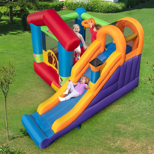 OLAKIDS Inflatable Bounce House, Kids Jumping Castle with Slide, Basketball Rim, Climbing Wall
