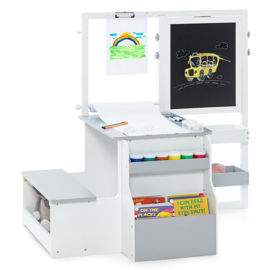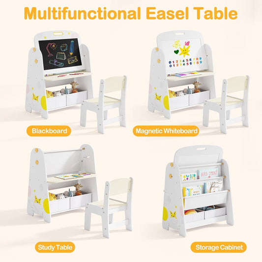 OLAKIDS 3 in 1 Kids Art Table and Chair Set, Toddler Wood Activity Desk with Double-Sided Easel, Children Furniture