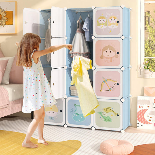 OLAKIDS Children Wardrobe, Kid Closet, Cute for Kids Bedroom Nursery Armoire with 8 Cube, Kid Clothes Storage Organizer