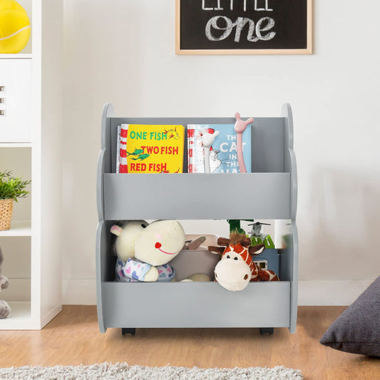 OLAKIDS Kids Bookshelf with Wheels, Wooden Bookcase Toy Storage Cabinet Organizer Holder