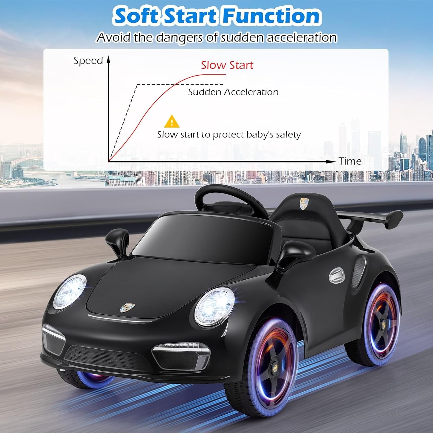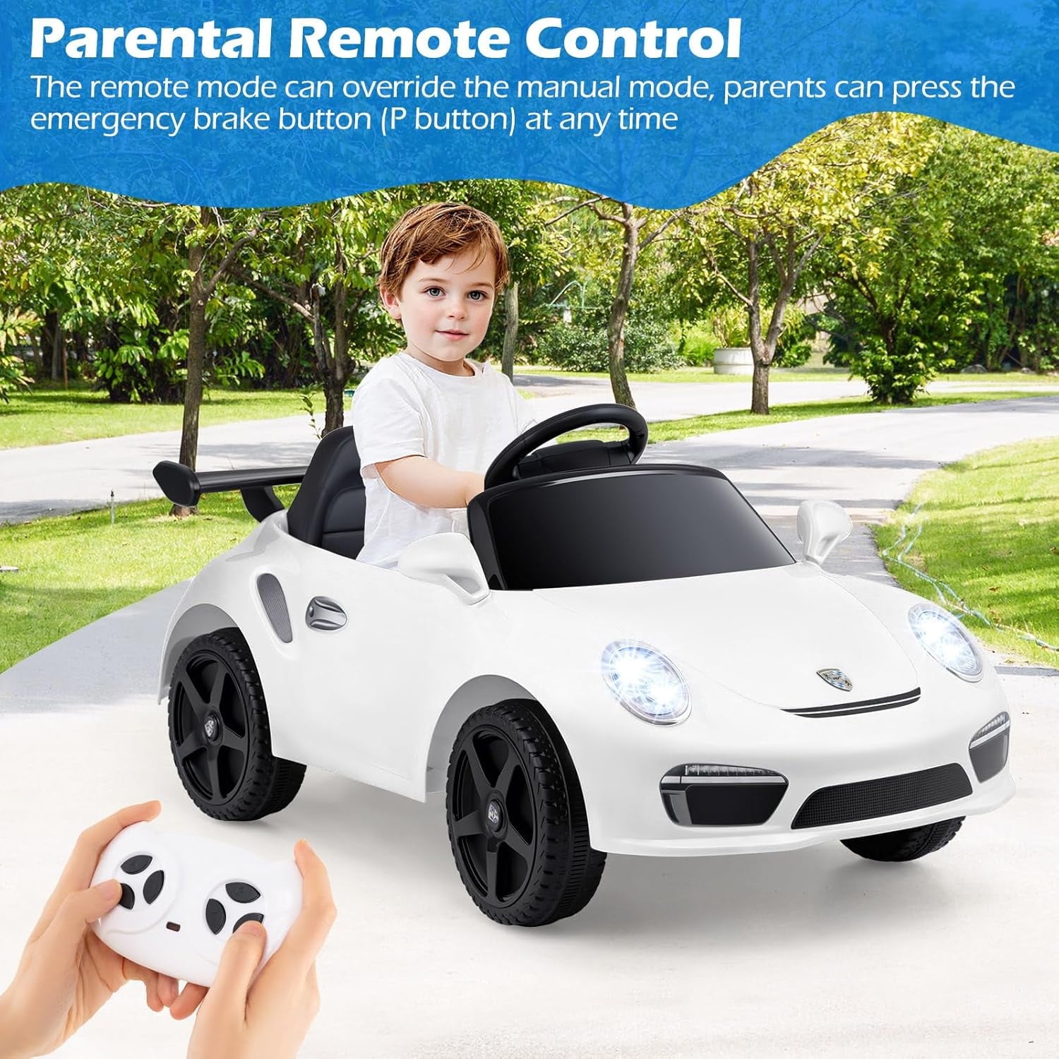 Licensed Porsche Design: This ultra-cool kids’ ride-on sports car is crafted for brave little drivers aged 3-8. The kids electric car features an officially licensed modified-Porsche body, equipped with a sleek rear wing, LED lights, steering wheel, foot pedal, and controllable shift lever, for an exciting driving experience