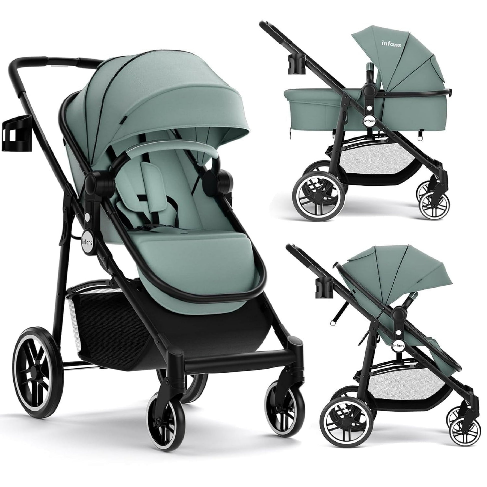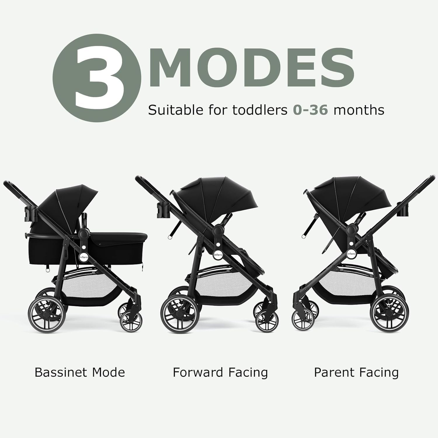 OLAKIDS 2 in 1 Baby Stroller, High Landscape Infant Stroller & Reversible Bassinet Pram, Foldable Pushchair