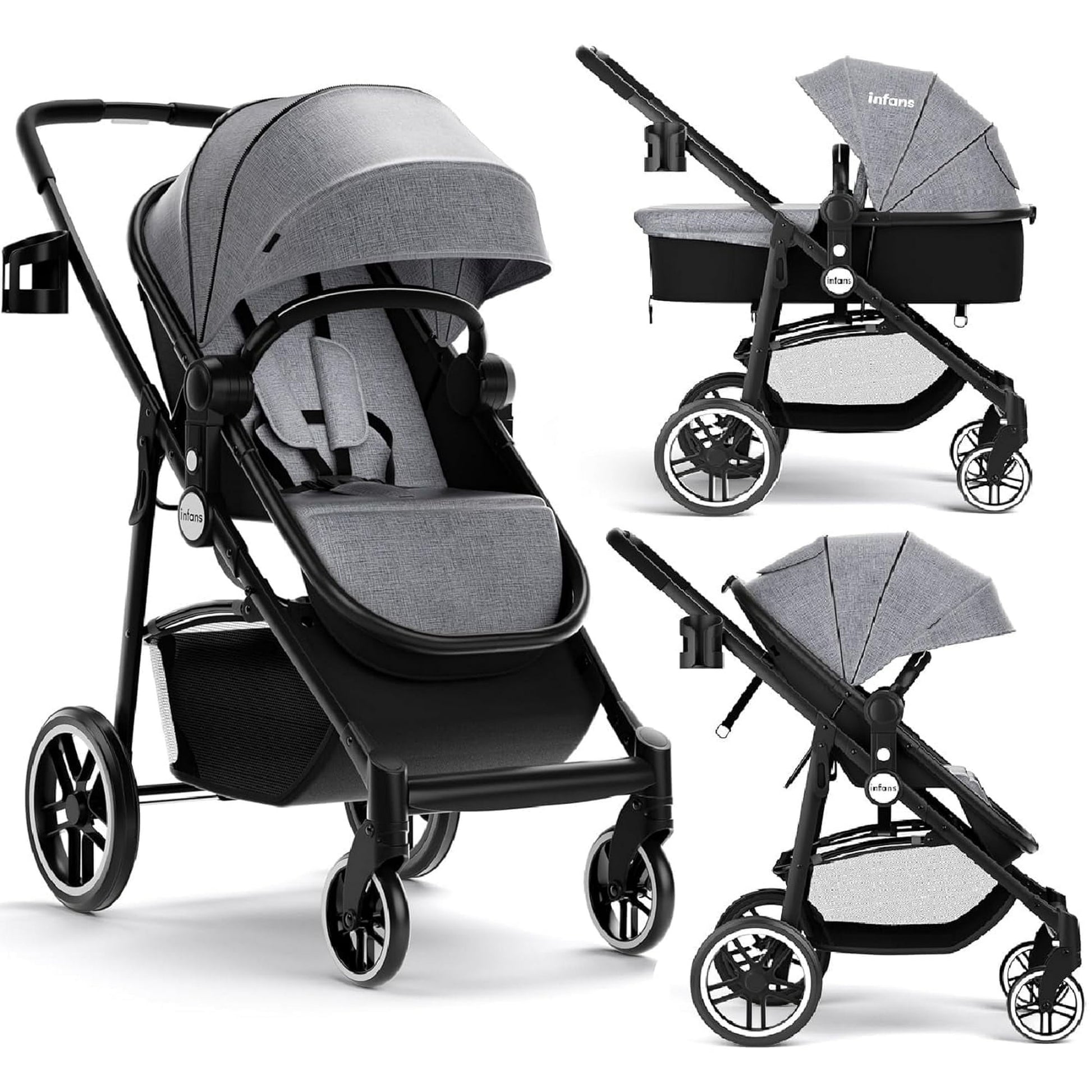 - ❤️FOLDABLE INFANT STROLLER & REVERSIBLE BASSINET PRAM:In order to meet the different use needs, this stroller has special 2-in-1 design. As a landscape design toddler stroller, your baby can enjoy the outside scenery and also free from automobile exhaust pollution. As a bassinet pram, baby can immediately have a comfortable sleeping space. And our stroller is also reversible in both directions to meet your different needs.