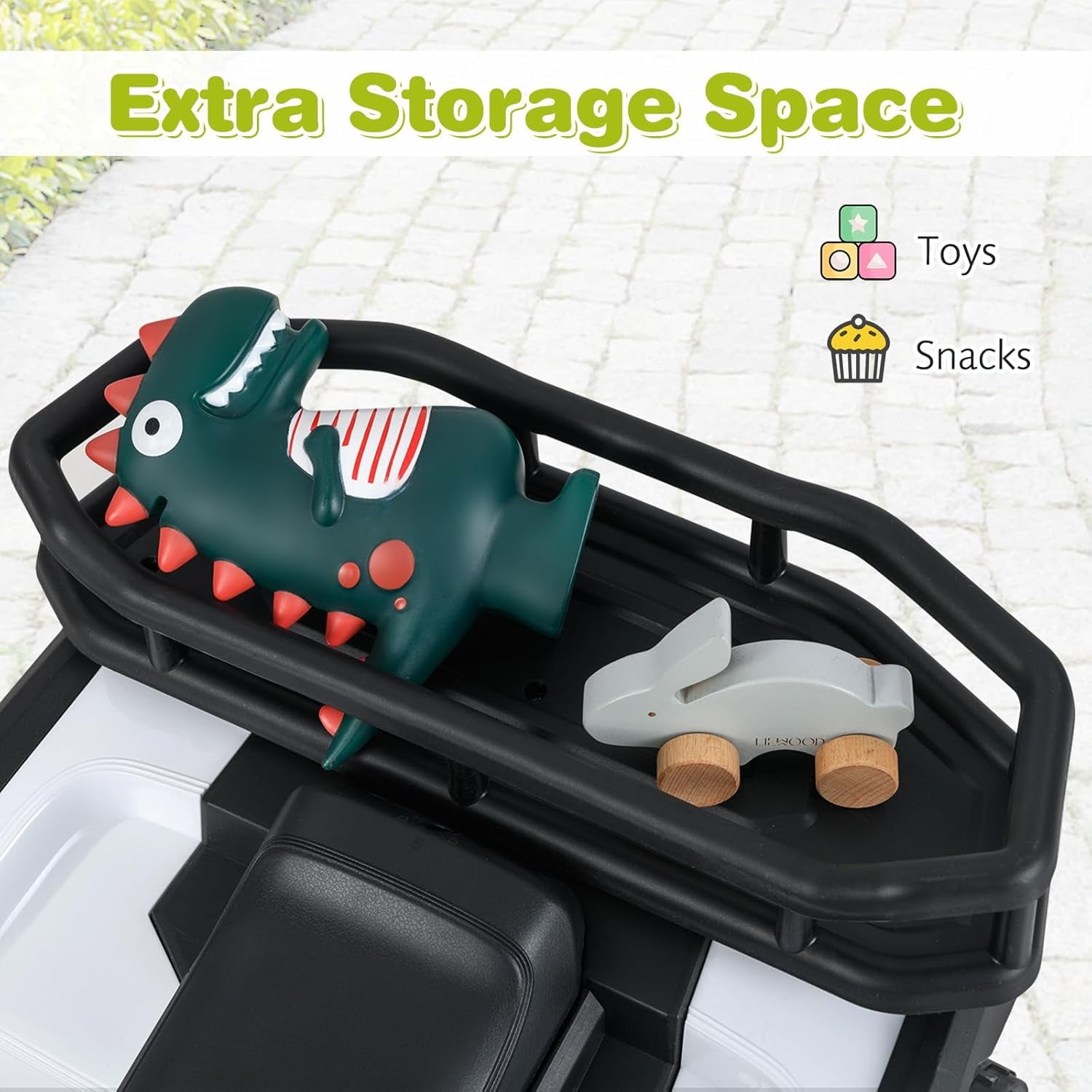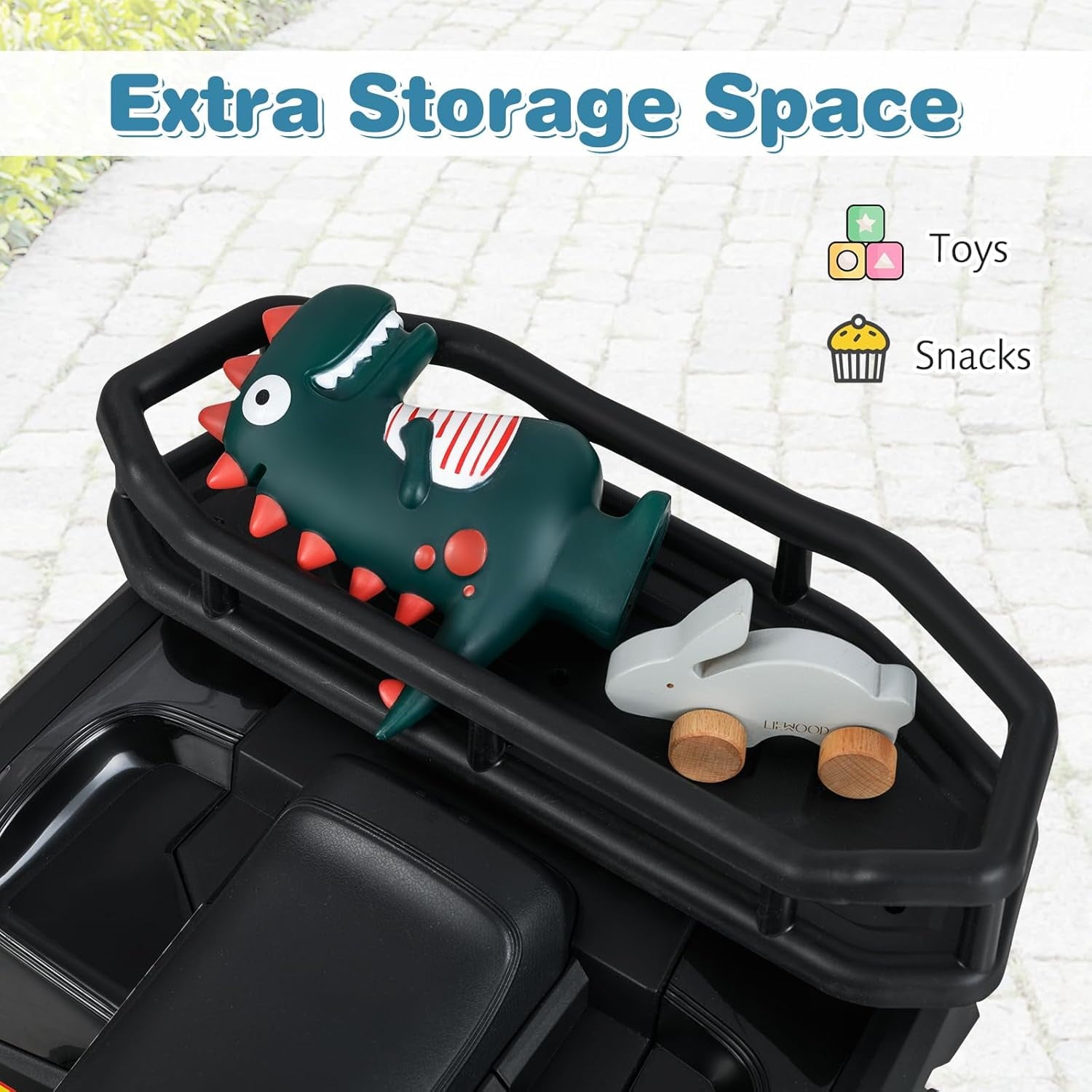 Rear Storage Rack: This 24-volt ride on toys feature a cleverly designed rear storage rack, perfect for little adventurers to carry toys, snacks, or adventure essentials. It’s not only practical but also serves as a rear bumper, offering extra protection against bumps and collisions
