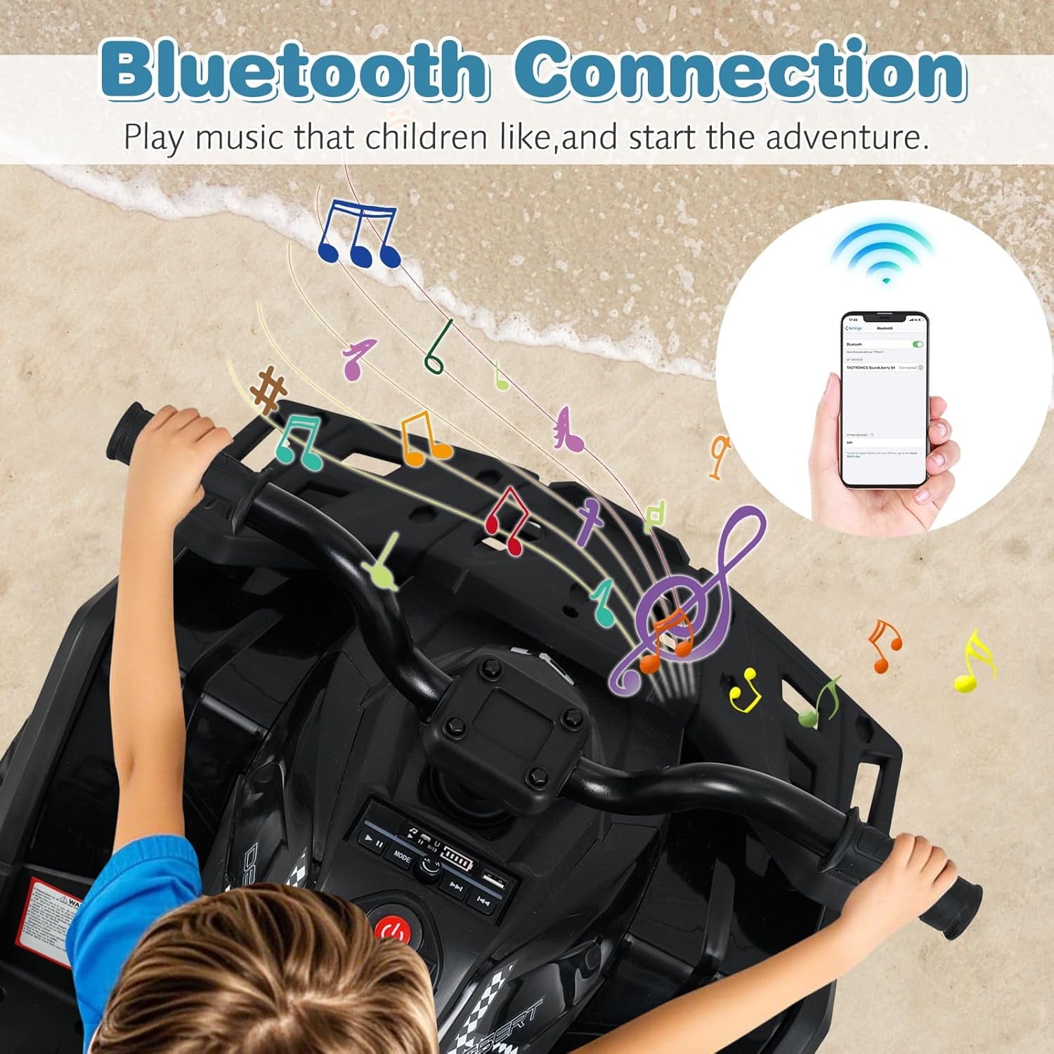 OLAKIDS 24V Ride on Car, Kids ATV Quad with Bluetooth, Music, LED Lights, Power Display, Rear Storage Rack, Spring Suspension, Electric 4 Wheeler for Kids Boys Girls Aged 3+ Years
