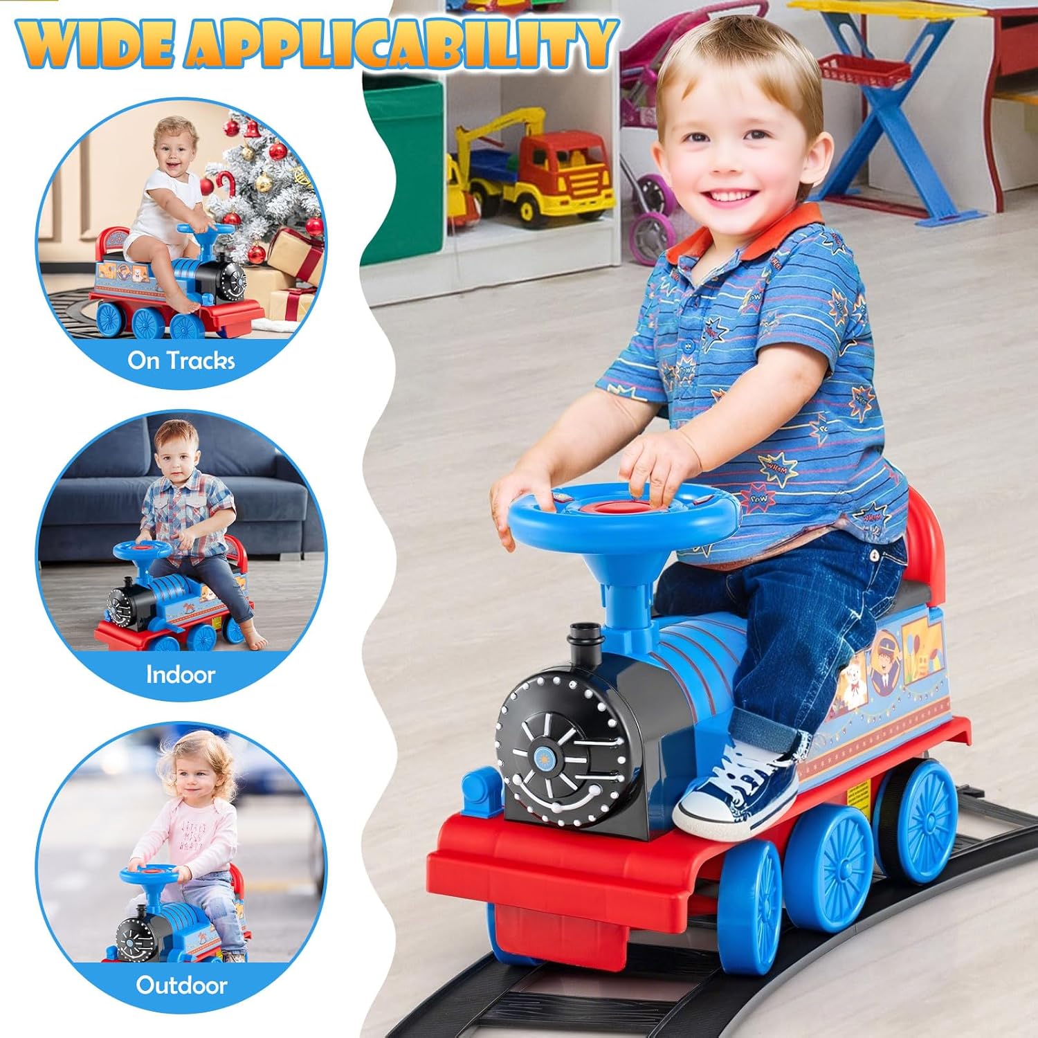 - 3 in 1 Ride on Train: Featuring 68.5-inch diameter 16pcs tracks, OLAKIDS toy train can be a riding car on the road and tracks. The retractable footrests also make it a sliding car and walker
