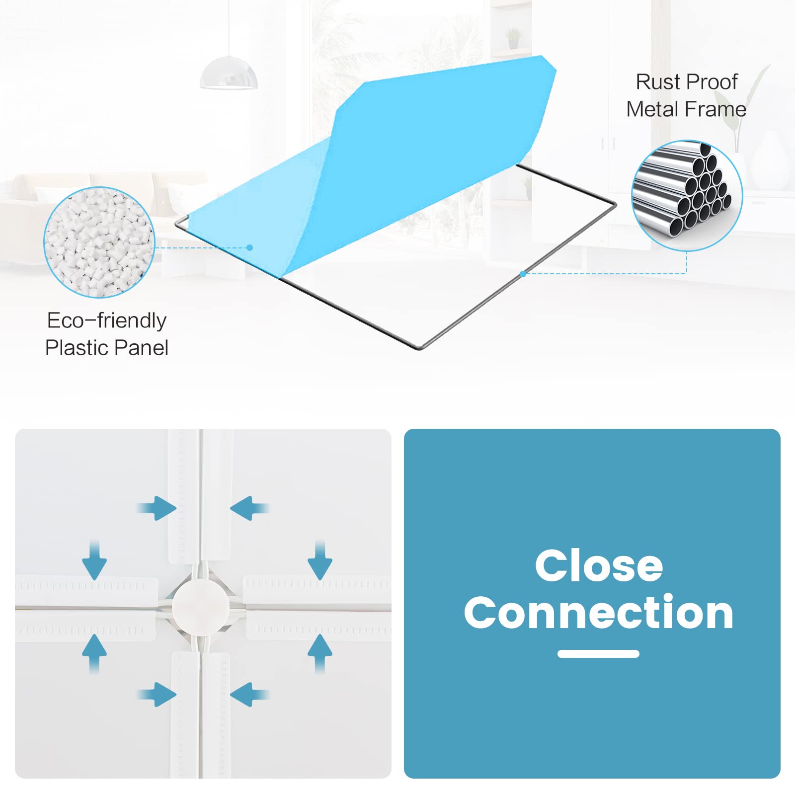 - ✨Tool-Free Assembly: Multi-angle ABS connectors allow panels to fit together easily, much easier than installing regular wooden furniture.