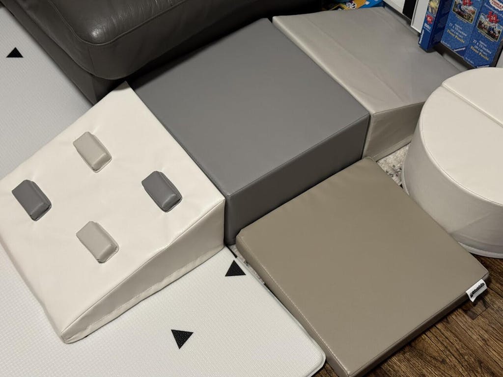 This six piece soft play set is perfect for my toddler. It gives my child a safe space to climb slide and crawl indoors every day. The foam is soft and supportive and the cover is simple to clean. It is lightweight and easy to move between rooms. I am very happy with this purchase.