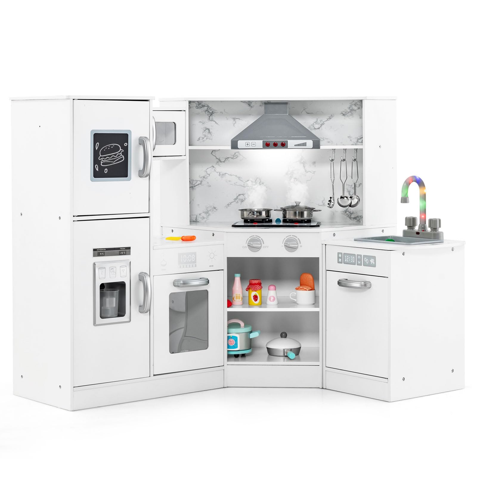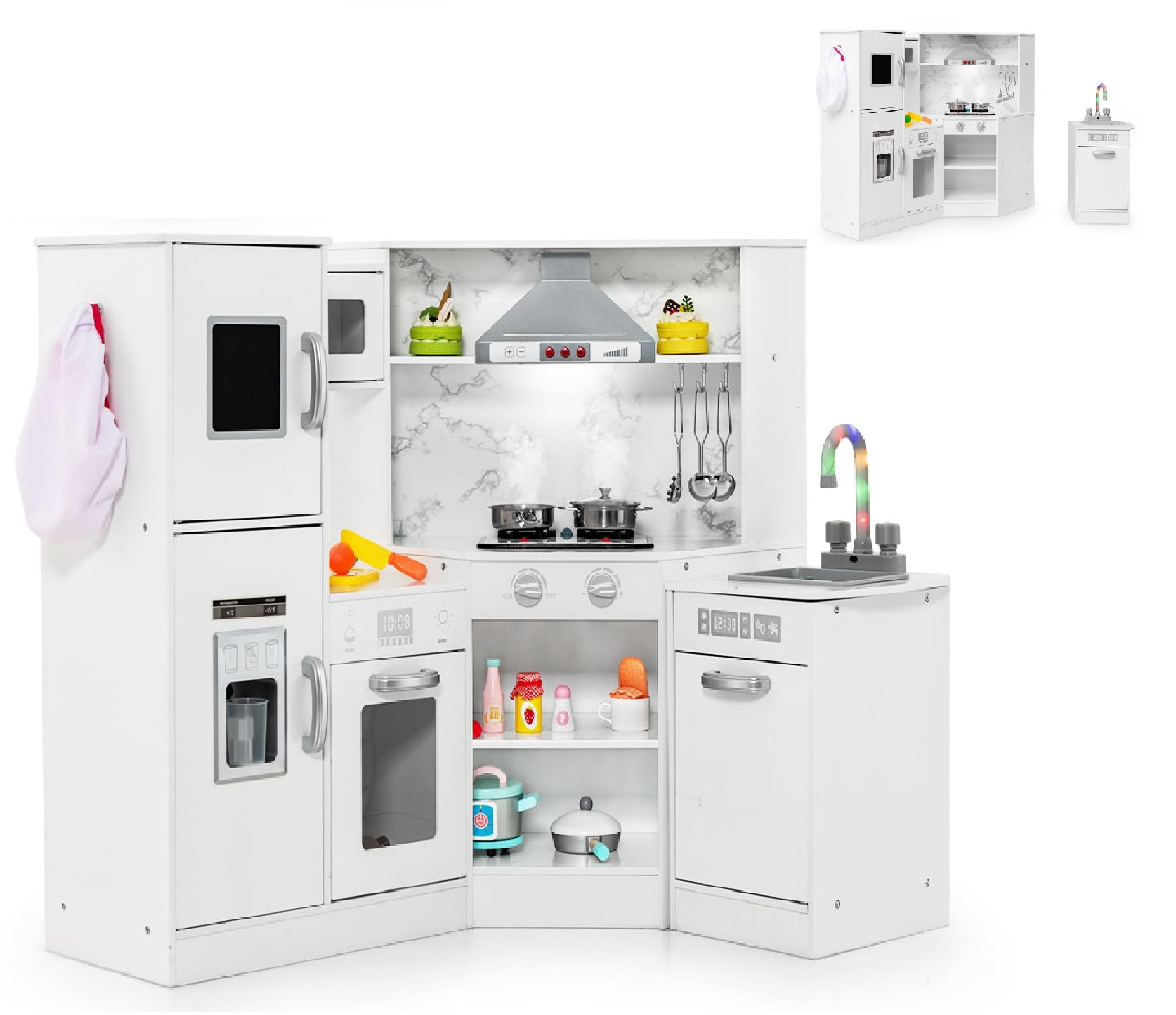 OLAKIDS Corner Kids Kitchen Playset, Toddler Wooden Pretend Cooking Set with Realistic Light Sound Stove