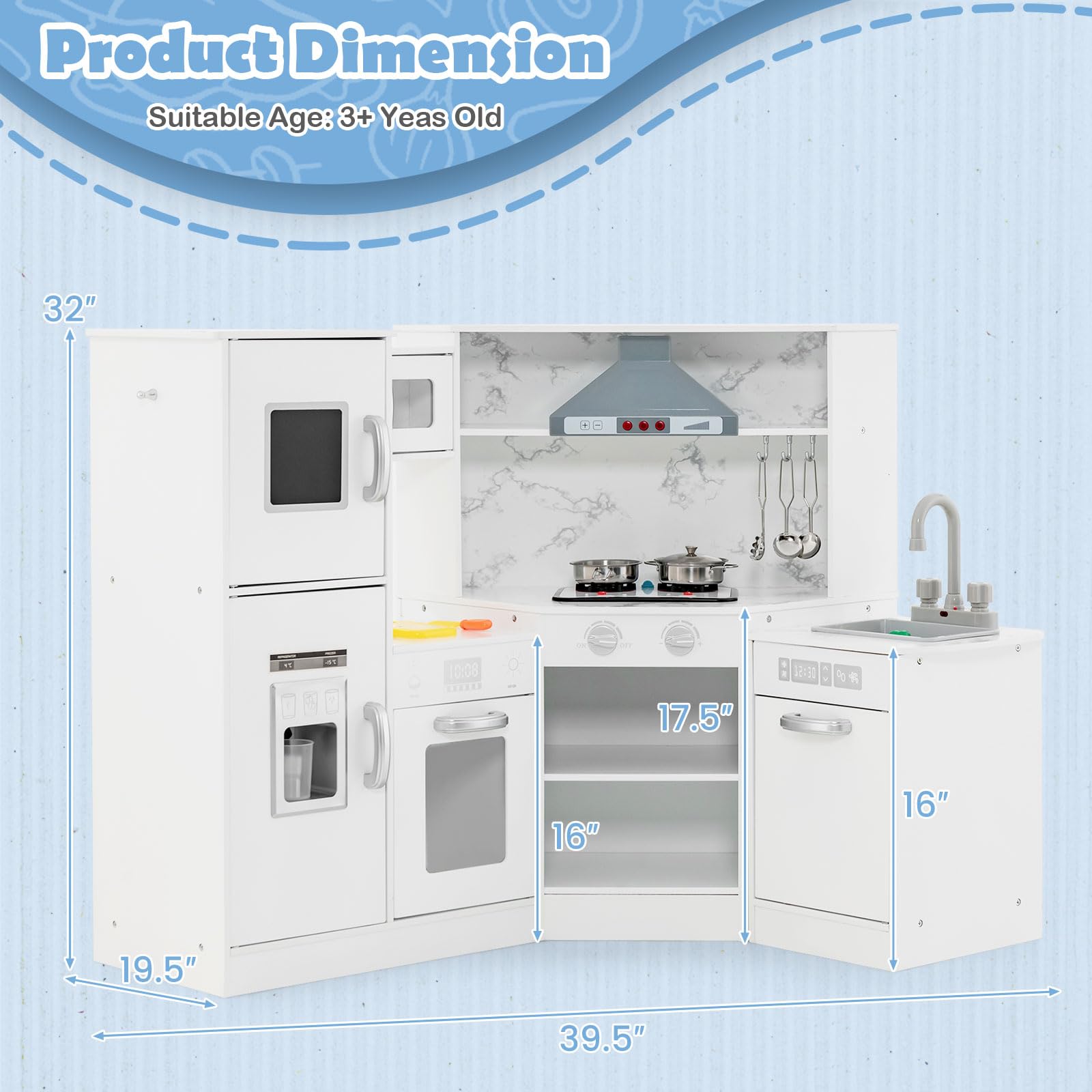 - ⭐Role-Playing Fun: This wooden pretend kitchen allows children to share the fun of exploring the kitchen with their peers by role-playing, and also provides a great opportunity for children to practice their language and social skills. The little chef can put on an apron and write the menu of the day on the blackboard. Then call the friends to eat through the telephone.