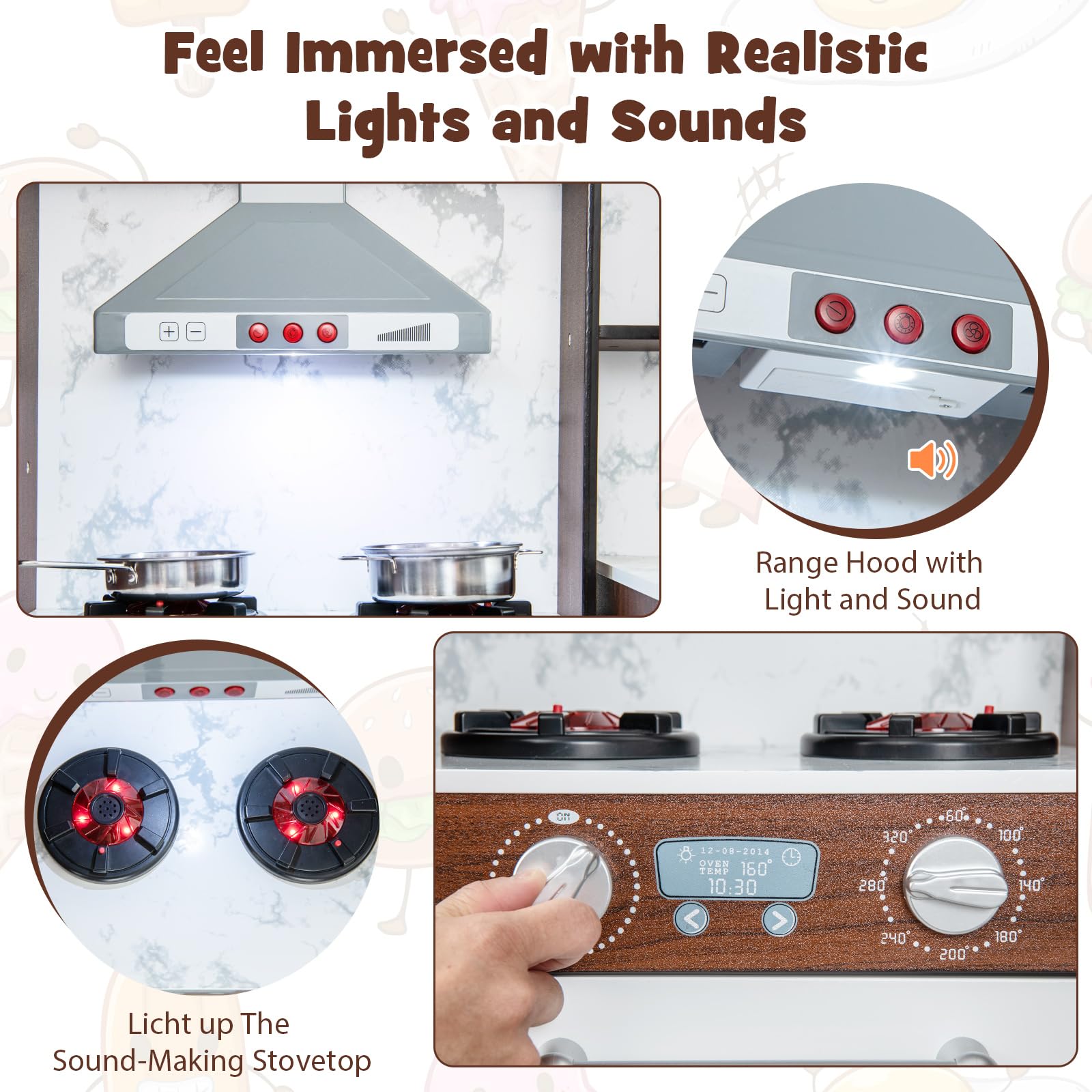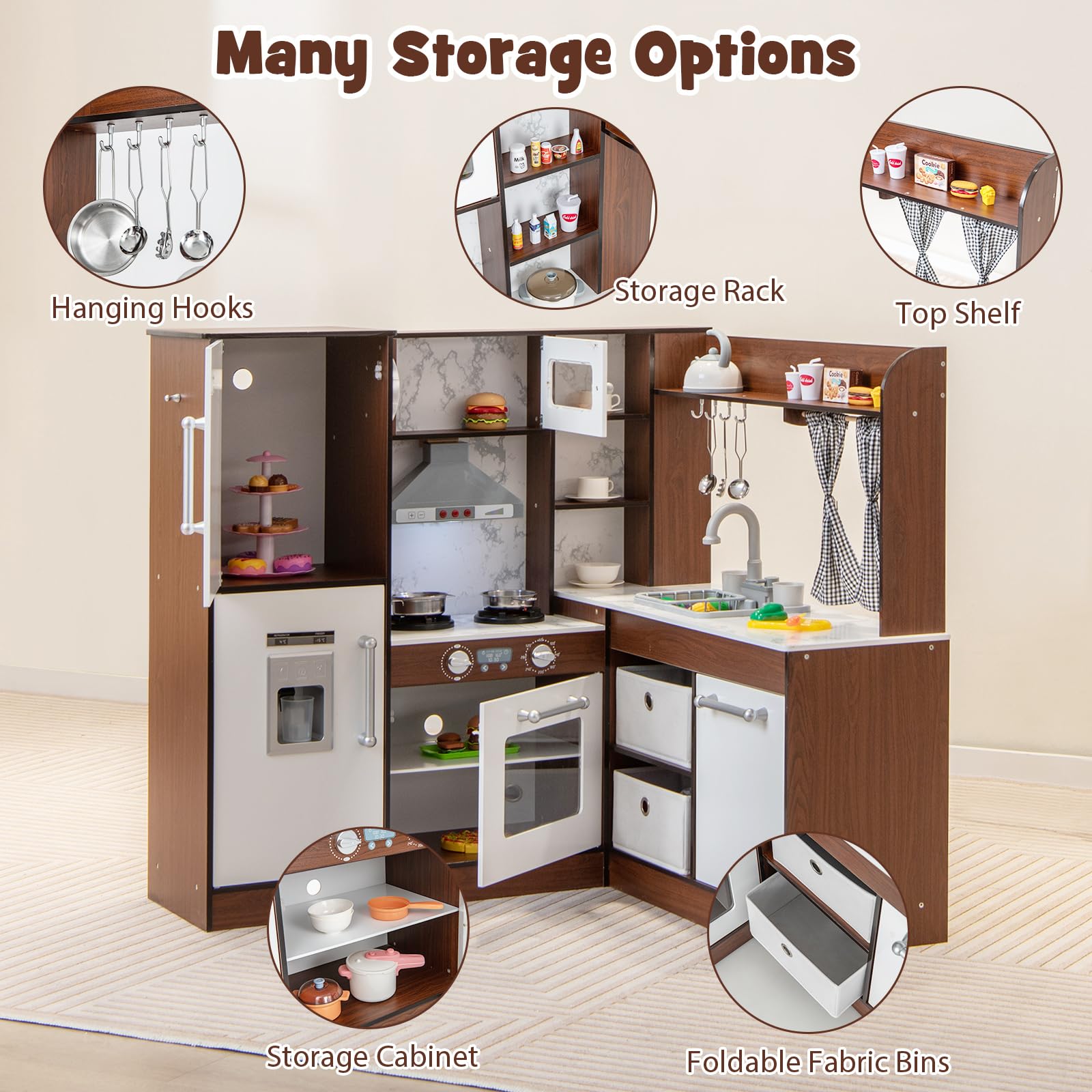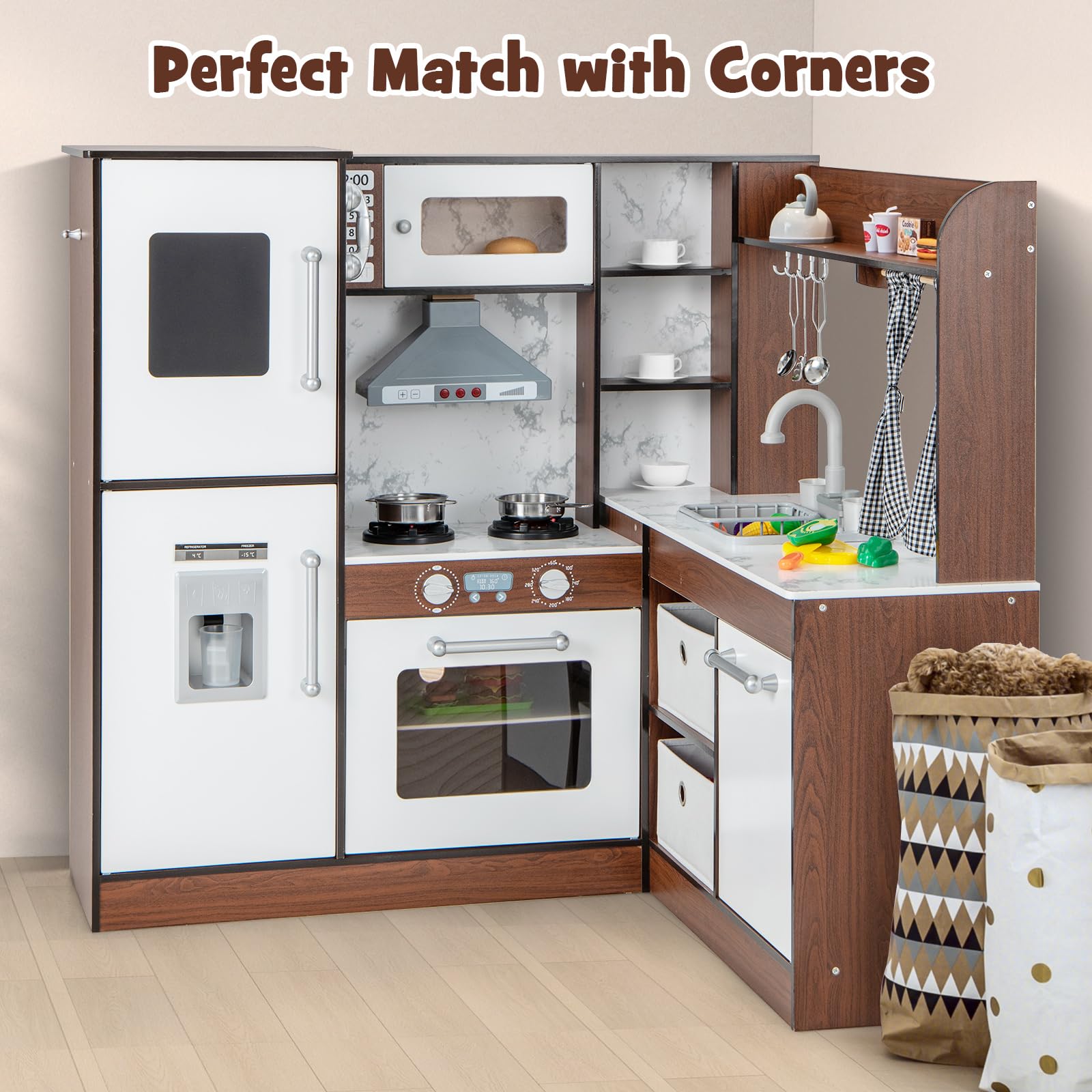 OLAKIDS Corner Kids Kitchen Playset, Ultimate Wooden Pretend Cooking Toy Set with Real Running Water