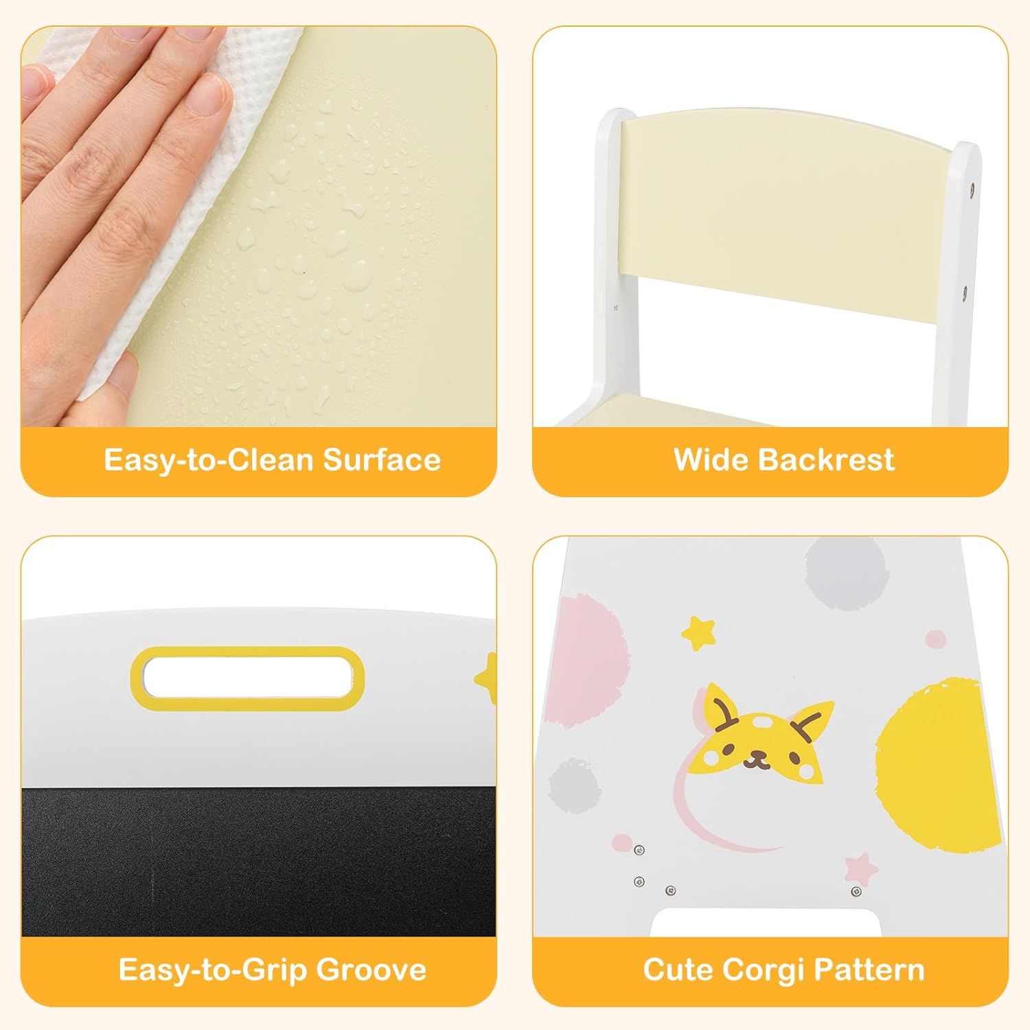 - Perfect Gift for Little Ones: This adjustable painting easel creates an all in one activity center for your kids and is the perfect gift for boys and girls ages three and up on birthdays, Christmas and other important holidays. Plus, unique and adorable Corgi puppy pattern attracts children's interest. Dimensions of easel table: 24 x 15.5 x 33 inch(L x W x H), dimensions of chair: 11.5 x 11 x 18 inch(L x W x H).