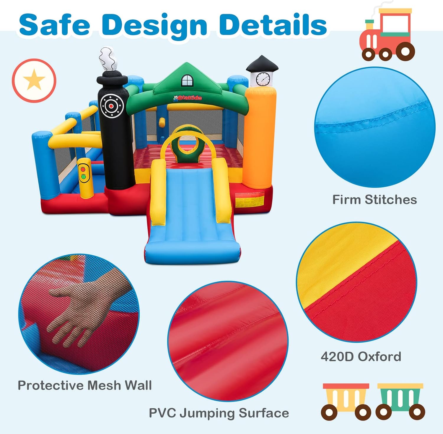 Enjoy Unlimited Fun: With attractive train theme design, kids will enjoy hours of happiness with their families and friends at this indoor bounce house, which can inspire their interests in sports and reduce screen time.