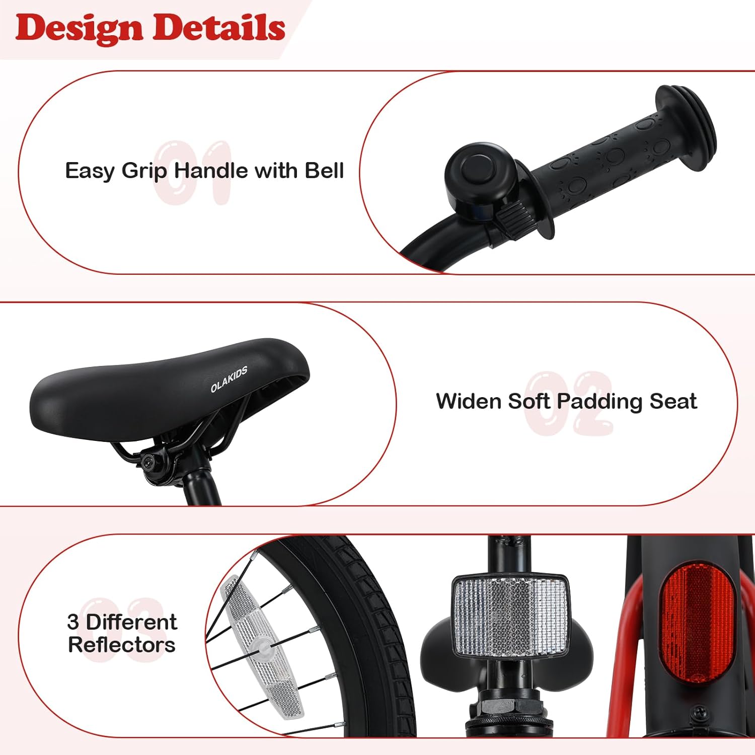 Olakids Kids Bike, 12 14 16 18 Inch Toddlers Bike with Training Wheels Safety Bell Adjustable Seat and Handlebar, Handbrake and Coaster Brake, Children's Bicycle for Boys Girls