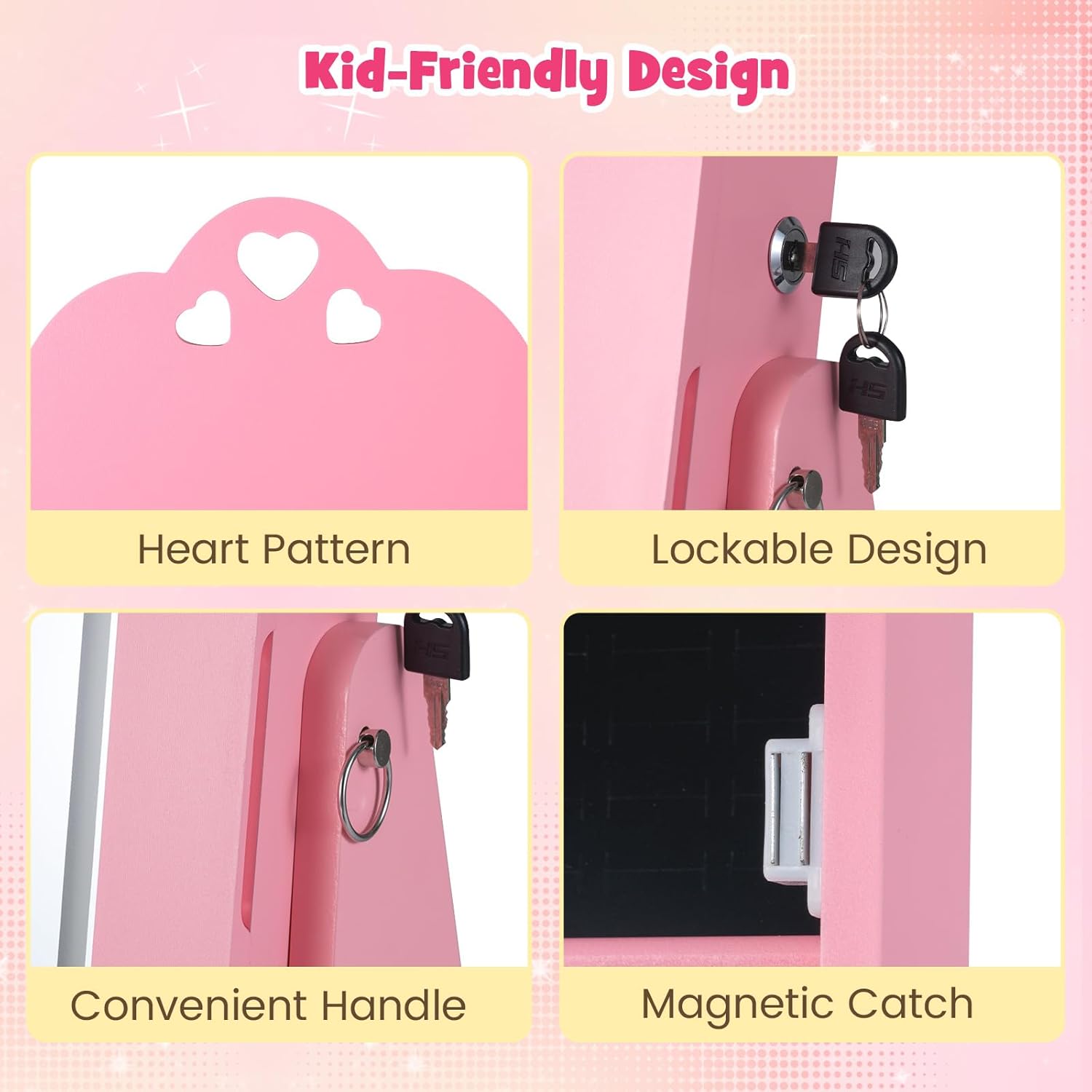 - Kids-Friendly Details: It is equipped with an anti-toppling device to securely stabilize the cabinet. The jewelry cabinet door can be locked to prevent jewelry from falling out and getting lost. The handle adopts a grooved design, making it easier for children to access their jewelry.