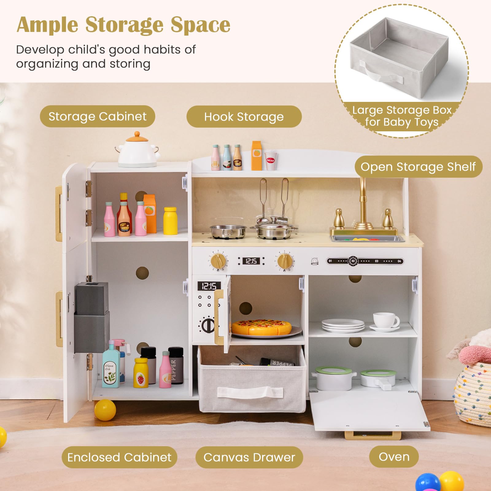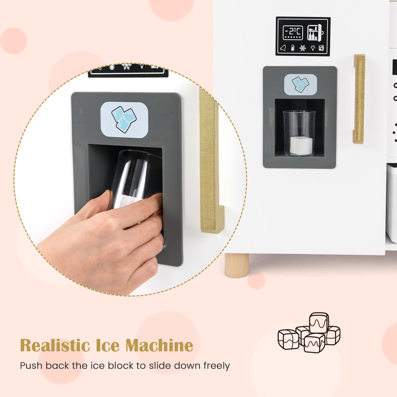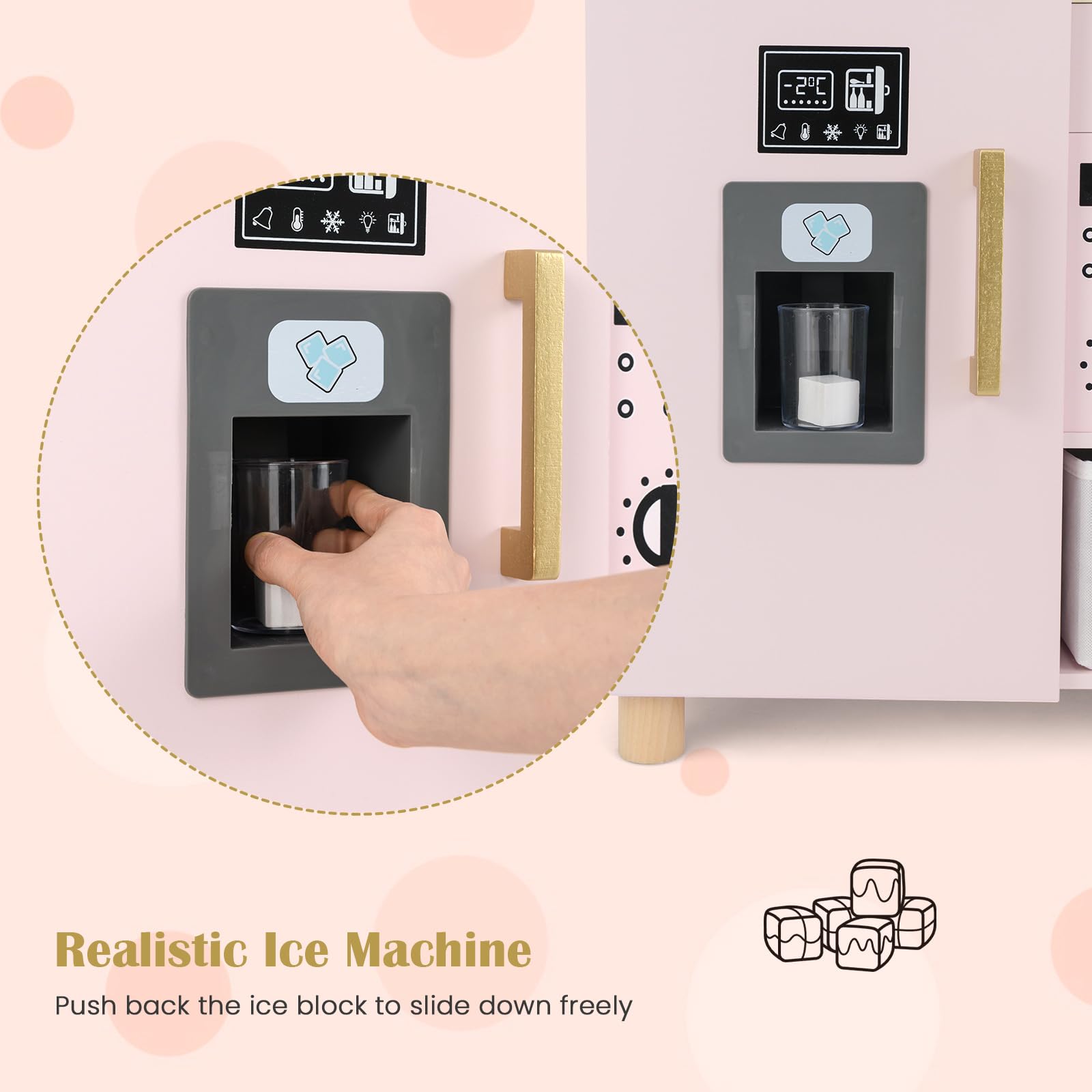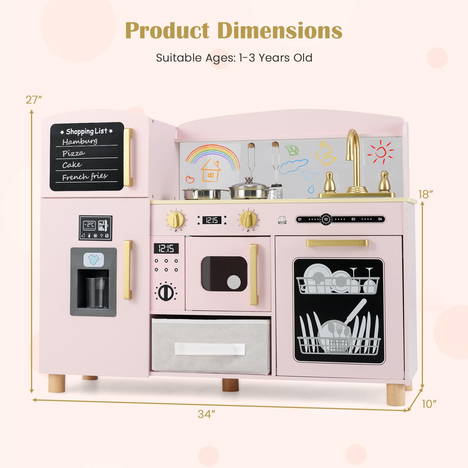OLAKIDS Kids Kitchen Playset, Toddler Wooden Pretend Cooking Toy Set with Acrylic Drawing Board Ice Machine Dishwasher