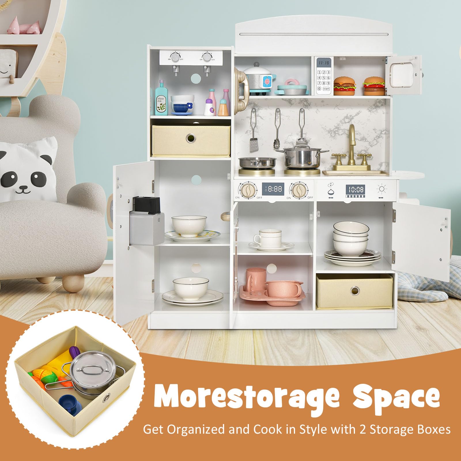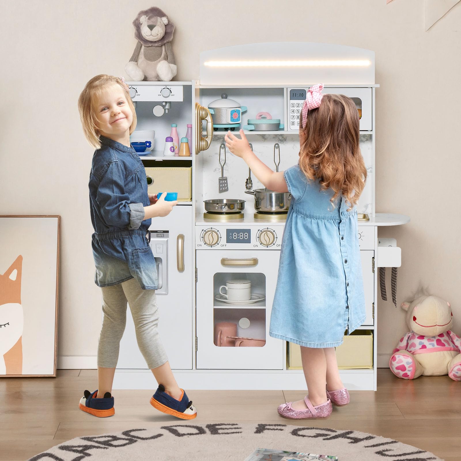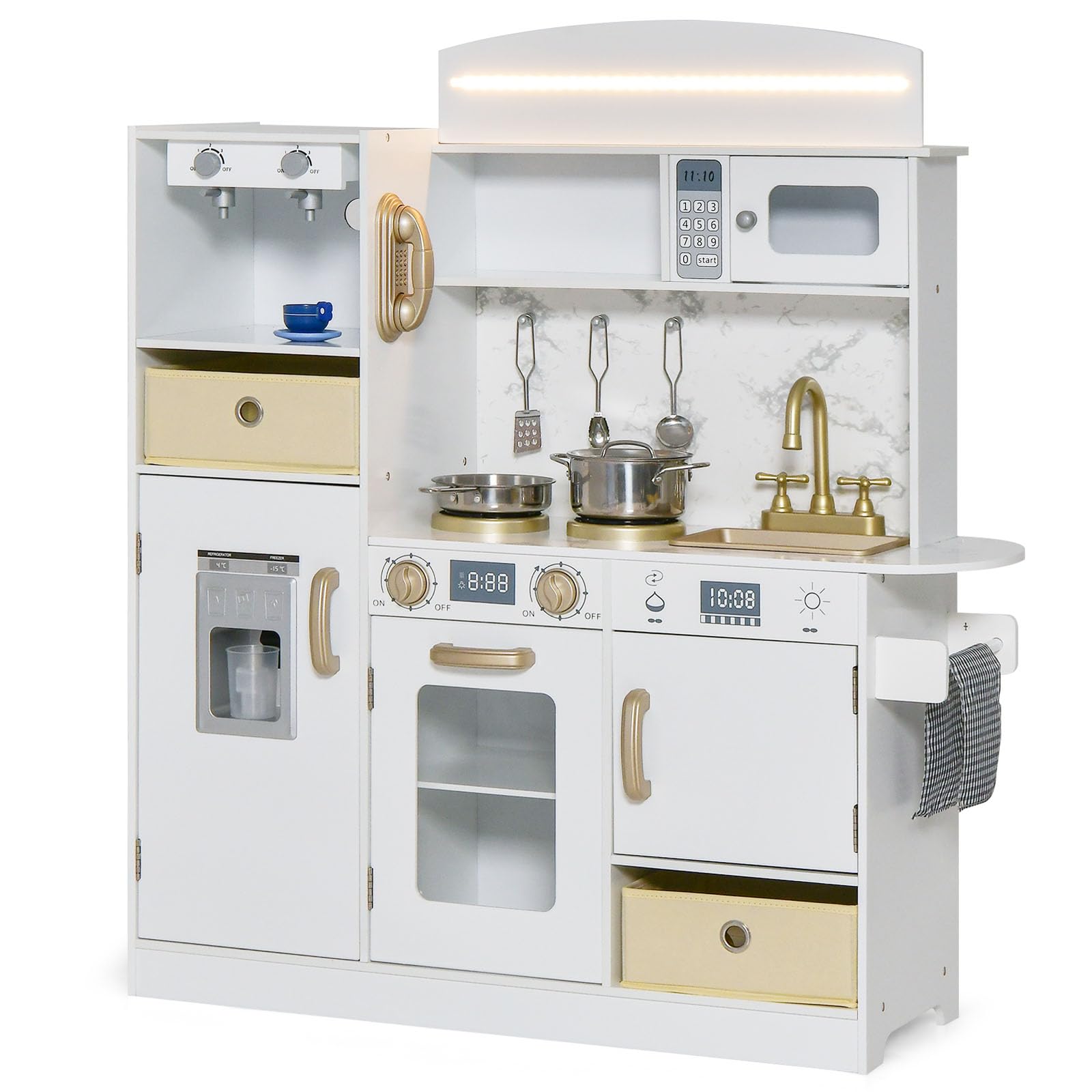 OLAKIDS Kids Kitchen Playset with Lights, Toddler Wooden Pretend Cooking Set with Coffee Maker