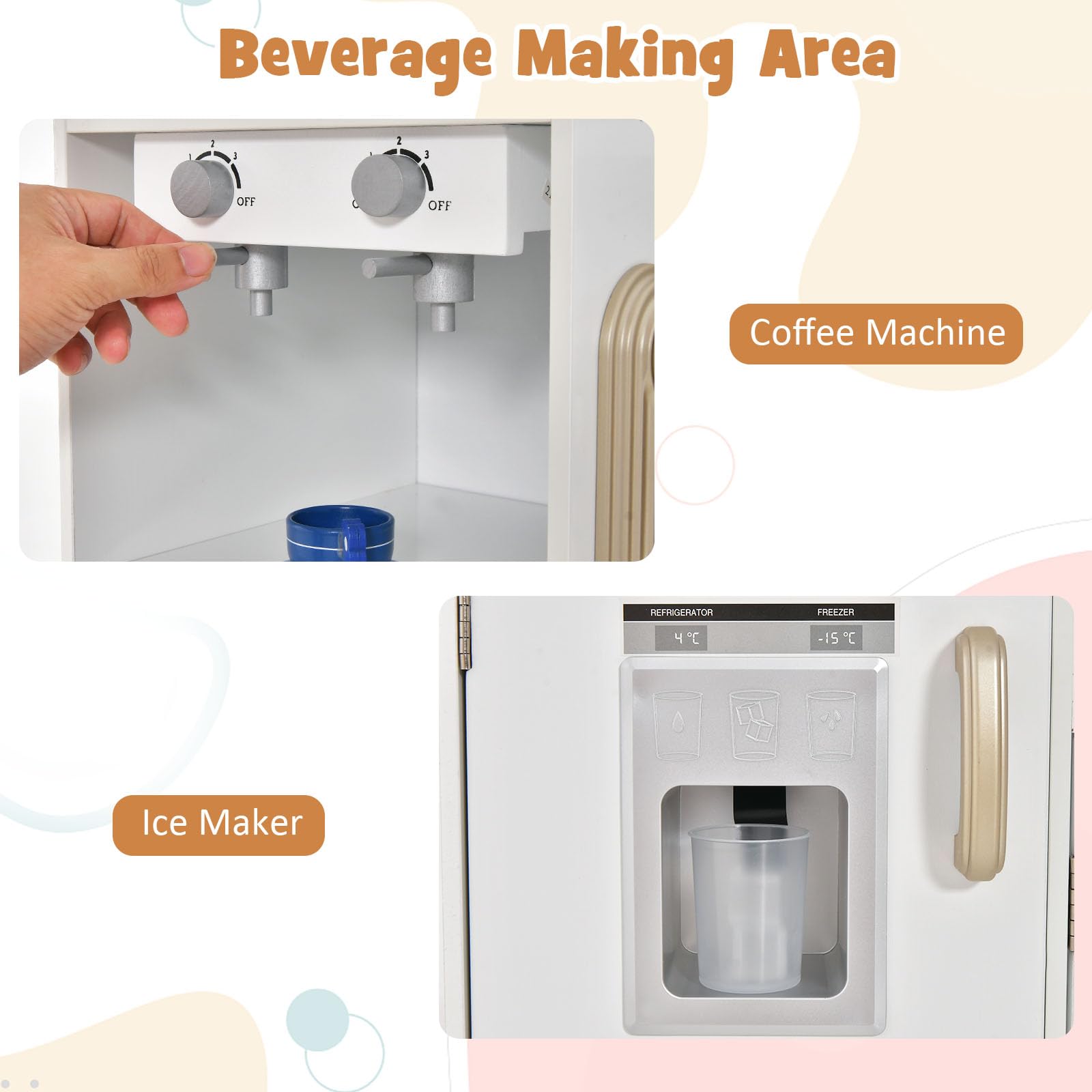 - 🍥Role-Playing Fun: This kids play kitchen will provide your little one with an immersive cooking experience, which features a coffee maker, ice maker, a gas stove with knobs, and a lifelike telephone. Not only will your child enjoy realistic cooking, but they'll also learn about food and develop essential life skills like washing up, fostering good habits from an early age.