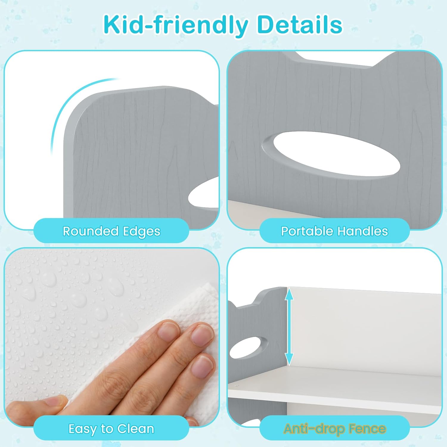 - Child-Friendly Design: The spacious tabletop provides ample space for kids to place books and toys. A thoughtful anti-drop baffle is added around the table edge to prevent items from slipping off accidentally. The hollowed-out handles are small and rounded, making it easy for children to carry the table and chairs effortlessly. Additionally, the chair can double as a step stool, supporting kids to explore the world freely.