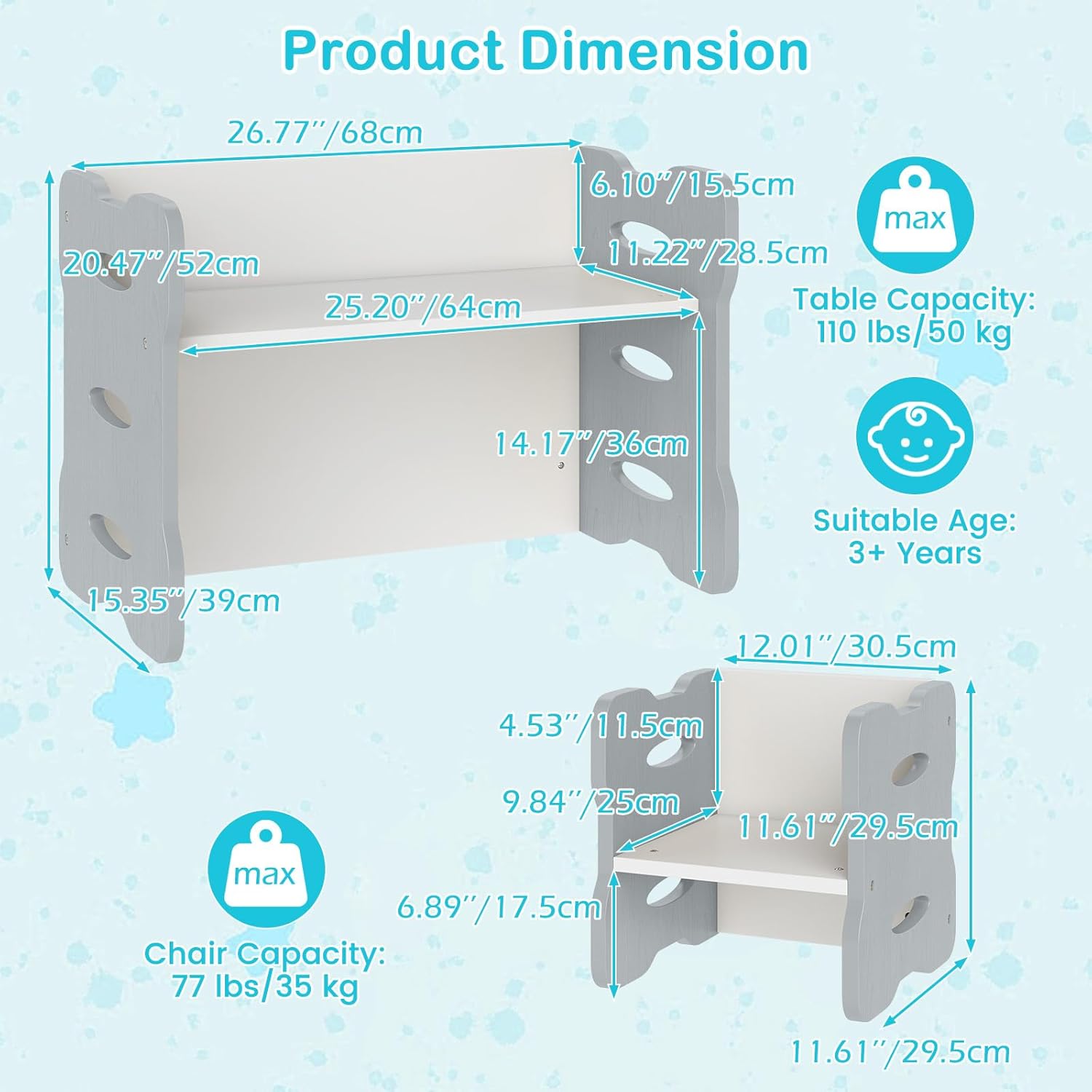 - High-quality Materials: The table and chairs for children is made of premium MDF, featuring a sturdy structure. Its surface is coated with child-safe paint, ensuring a smooth touch without any burrs. Daily cleaning only requires a gentle wipe, making maintenance hassle-free.