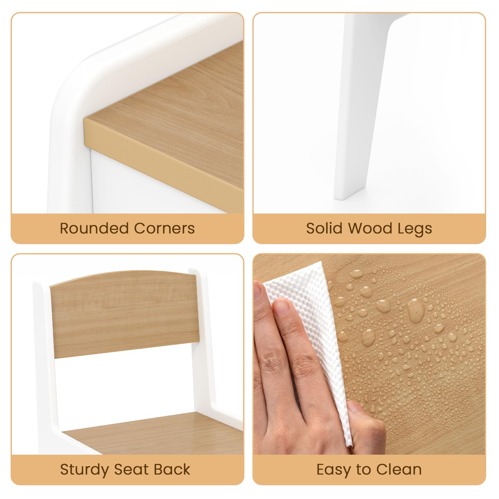 - Focus on Quality: Crafted from premium natural wood and water based paints, BPA free. This wooden kids play table and chair set is fully compliant with the requirements of the U.S. ASTMF-963 and CPSIA safety standard for physical and chemical safety testing.