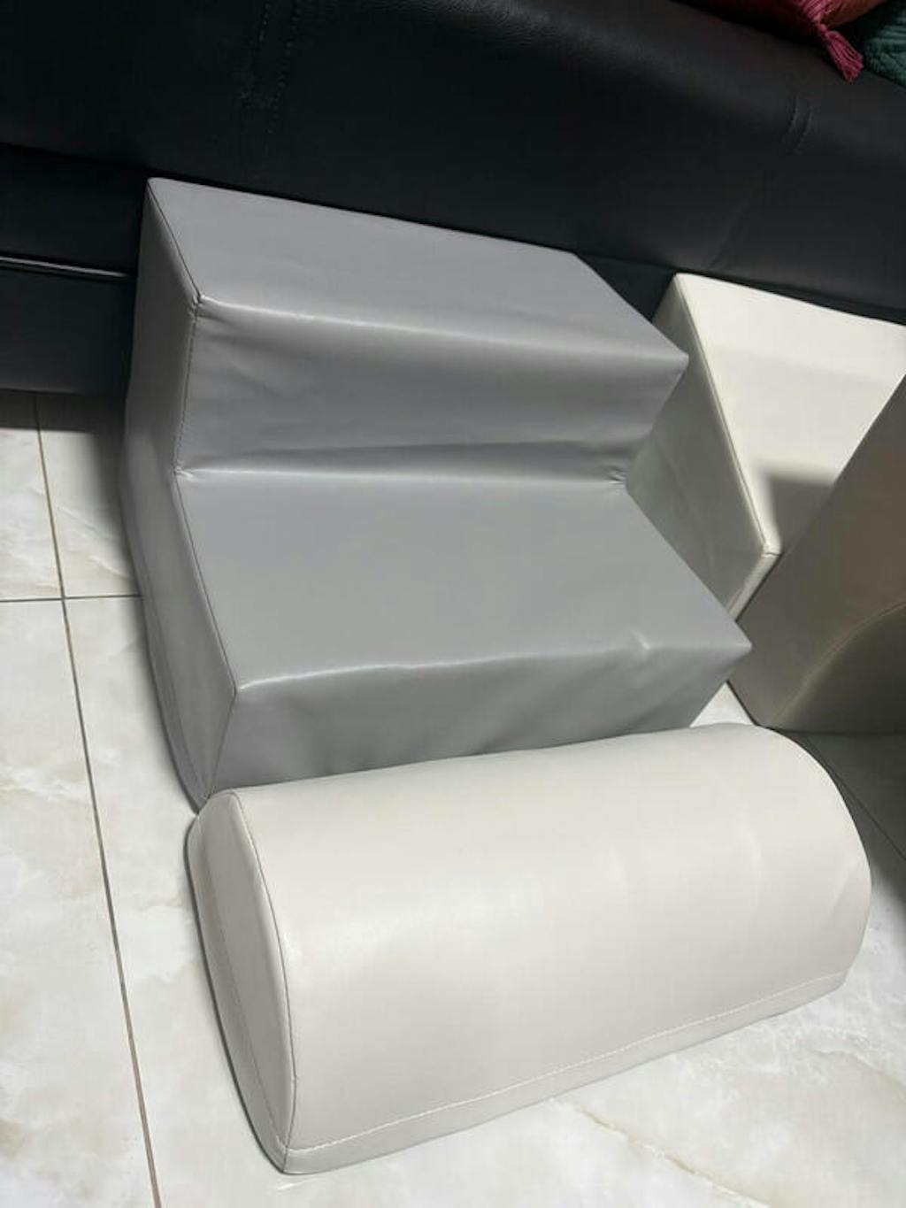 This eight piece soft play set brings so much joy to my toddler. It includes a tunnel a triangle a trapezoid and many other fun pieces that let my child climb slide and crawl safely indoors. The soft foam keeps my little one protected during play. I am very pleased with this purchase.