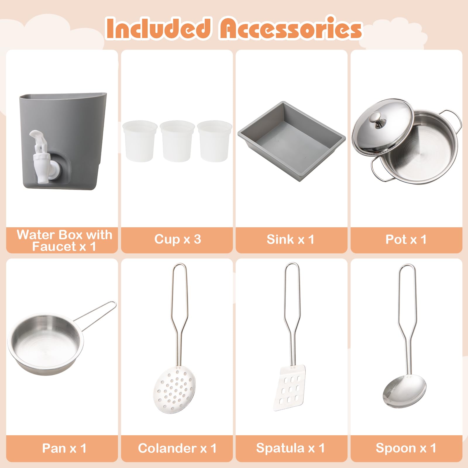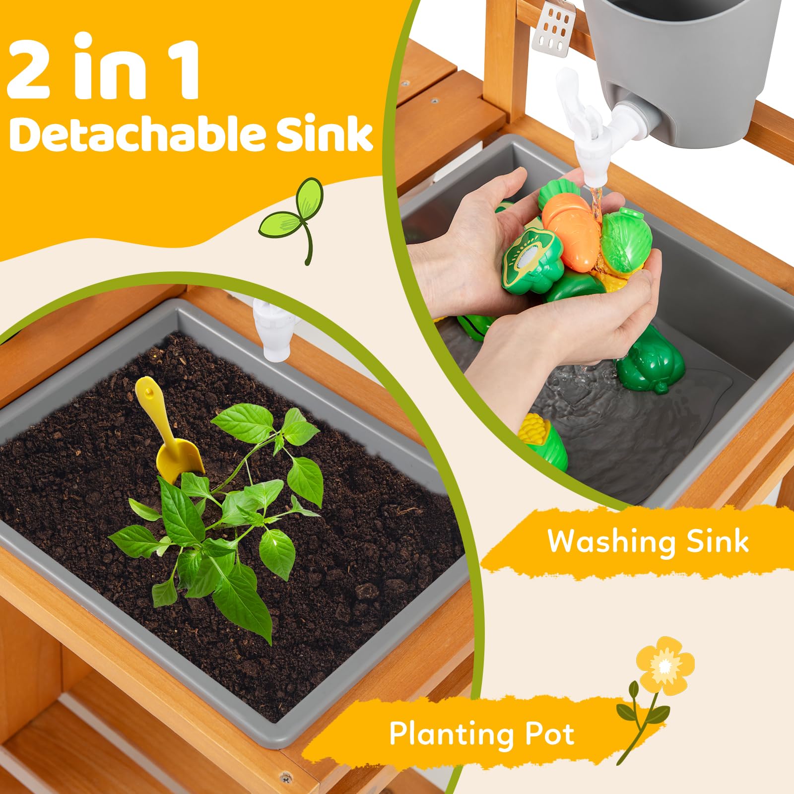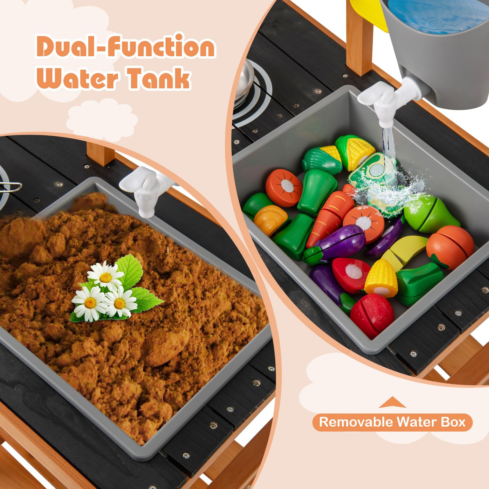 - Running Faucet & Removable Sink: Spacious sink perfect for washing food, vegetables, or toys, doubling as a mud and sand mixing station for endless outdoor fun and creativity in the backyard play area.