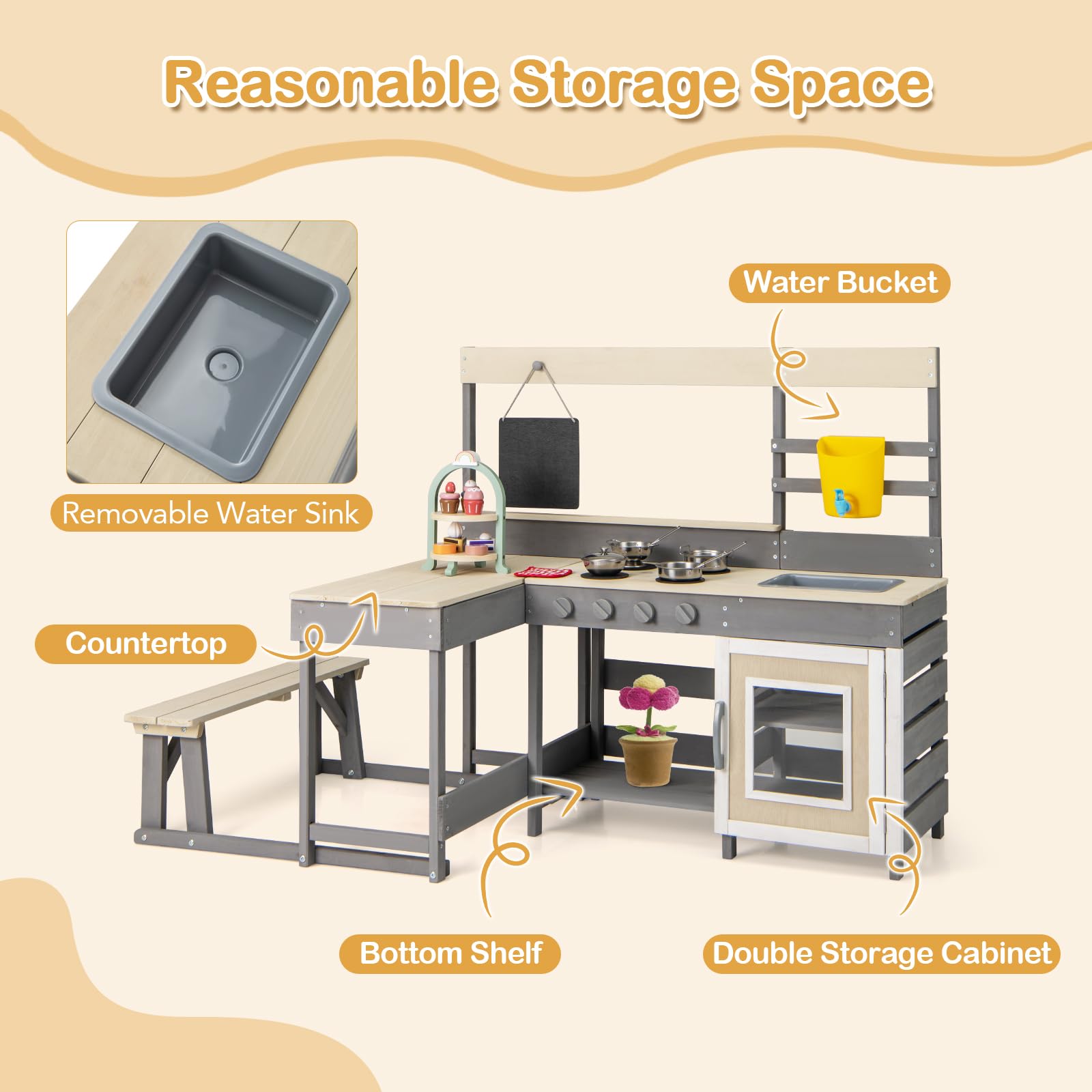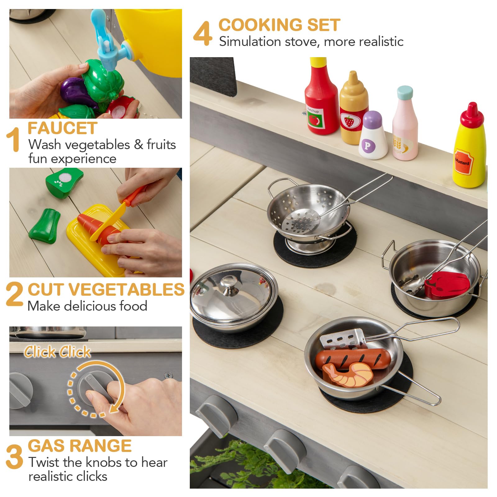 - Running Faucet & Removable Sink: Spacious sink perfect for washing food, vegetables, or toys, doubling as a mud and sand mixing station for endless outdoor fun and creativity in the backyard play area.