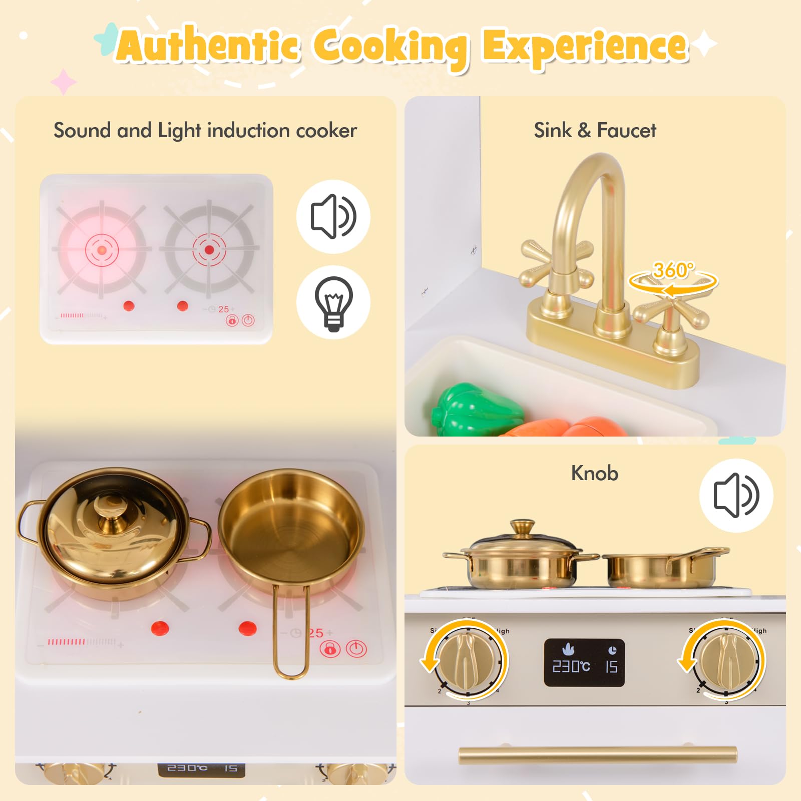 - 🍹Ready to Play Immediately: Ignite child's imagination and strengthen the parent-child bond through our captivating kitchen playset. The toddler upgraded play kitchen features a spacious design with open shelves and closed cabinets to provide plenty of storage space for toys. This is an Ideal gift for kids birthday and Christmas.