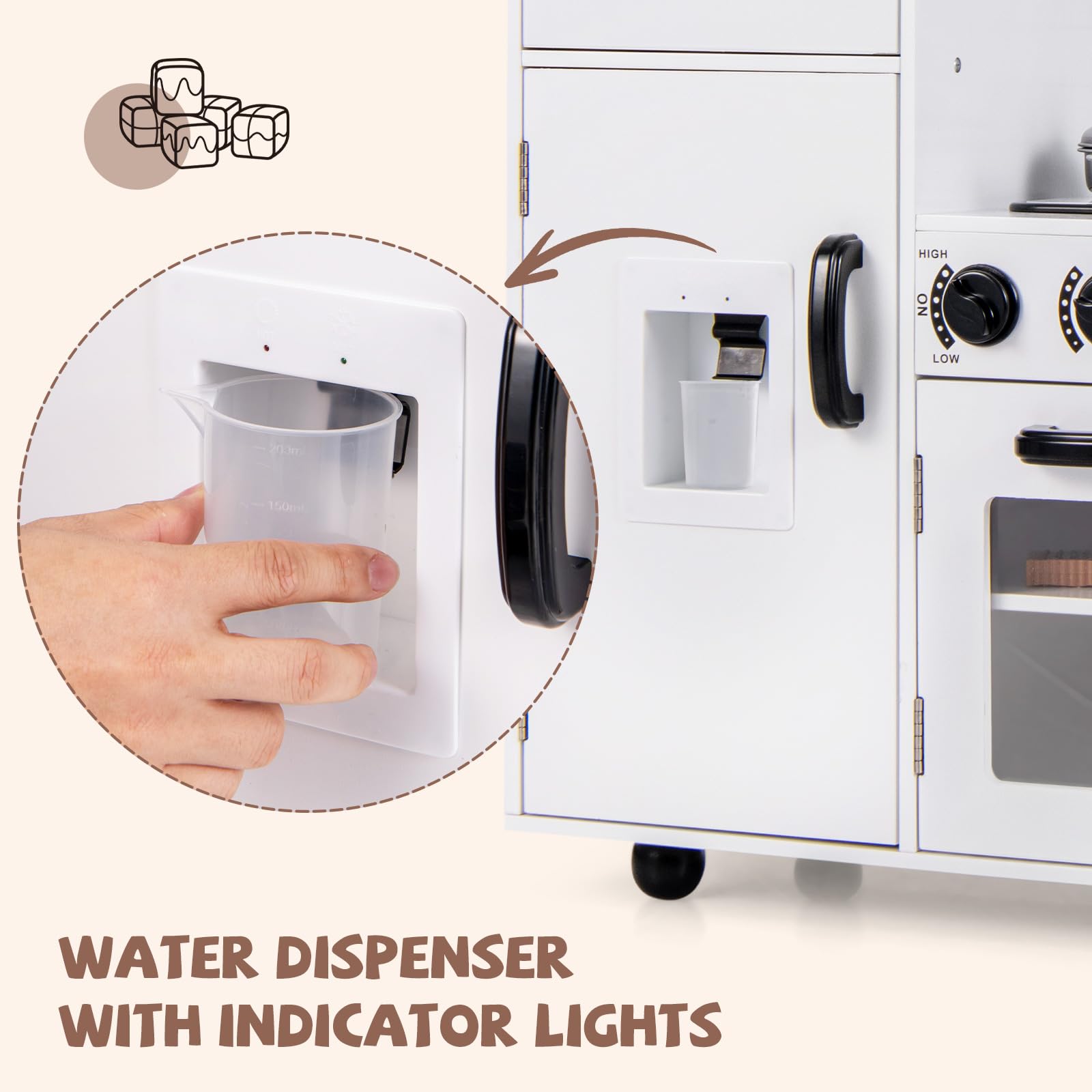 - Ultimate Play Experience: Crafted features like the faucet, oven, dishwasher, stove and vocal knobs create a realistic toy kitchen environment for kids to immerse themselves in. Parents can teach children about food and general skills, so that children learn to wash, cook, and develop good habits from an early age.