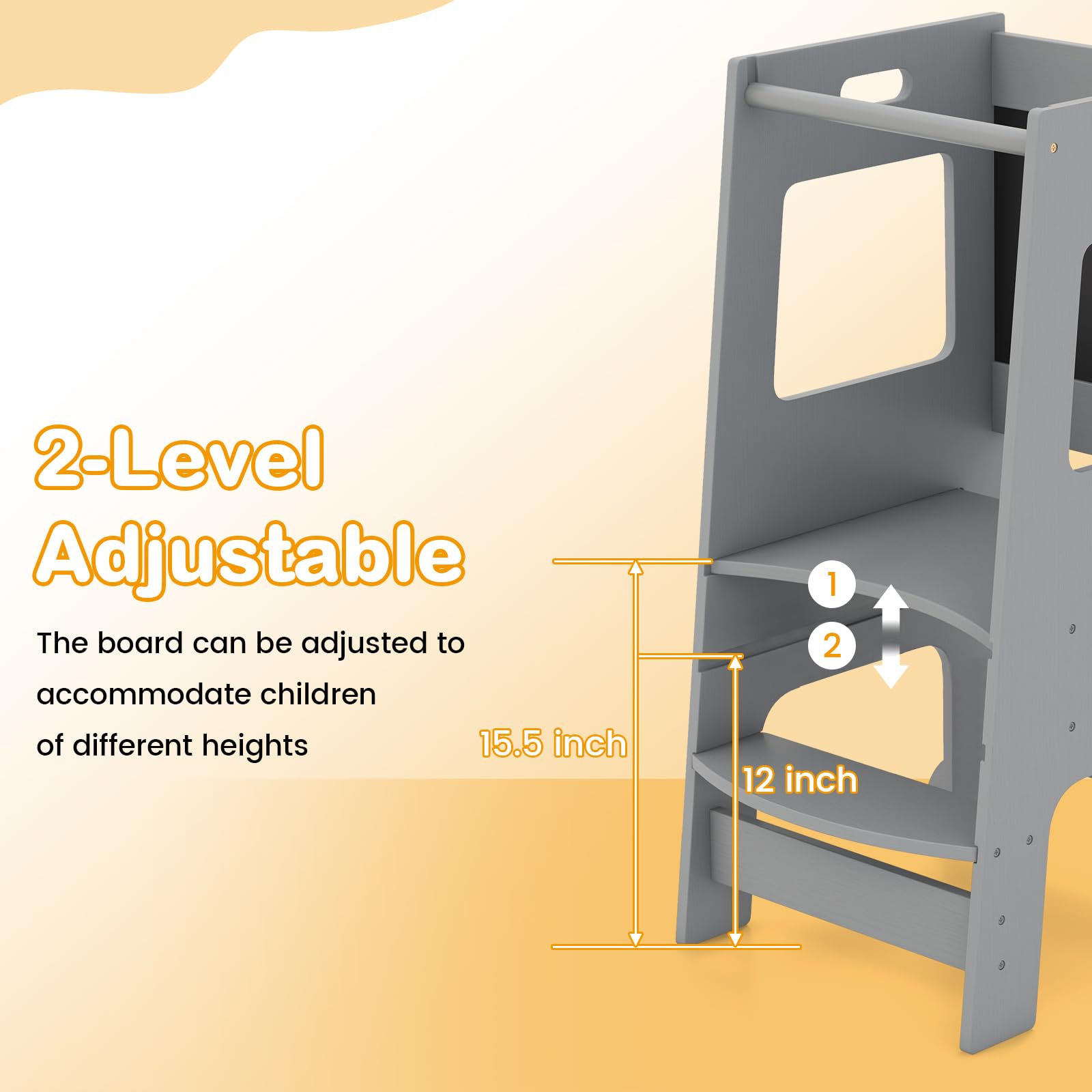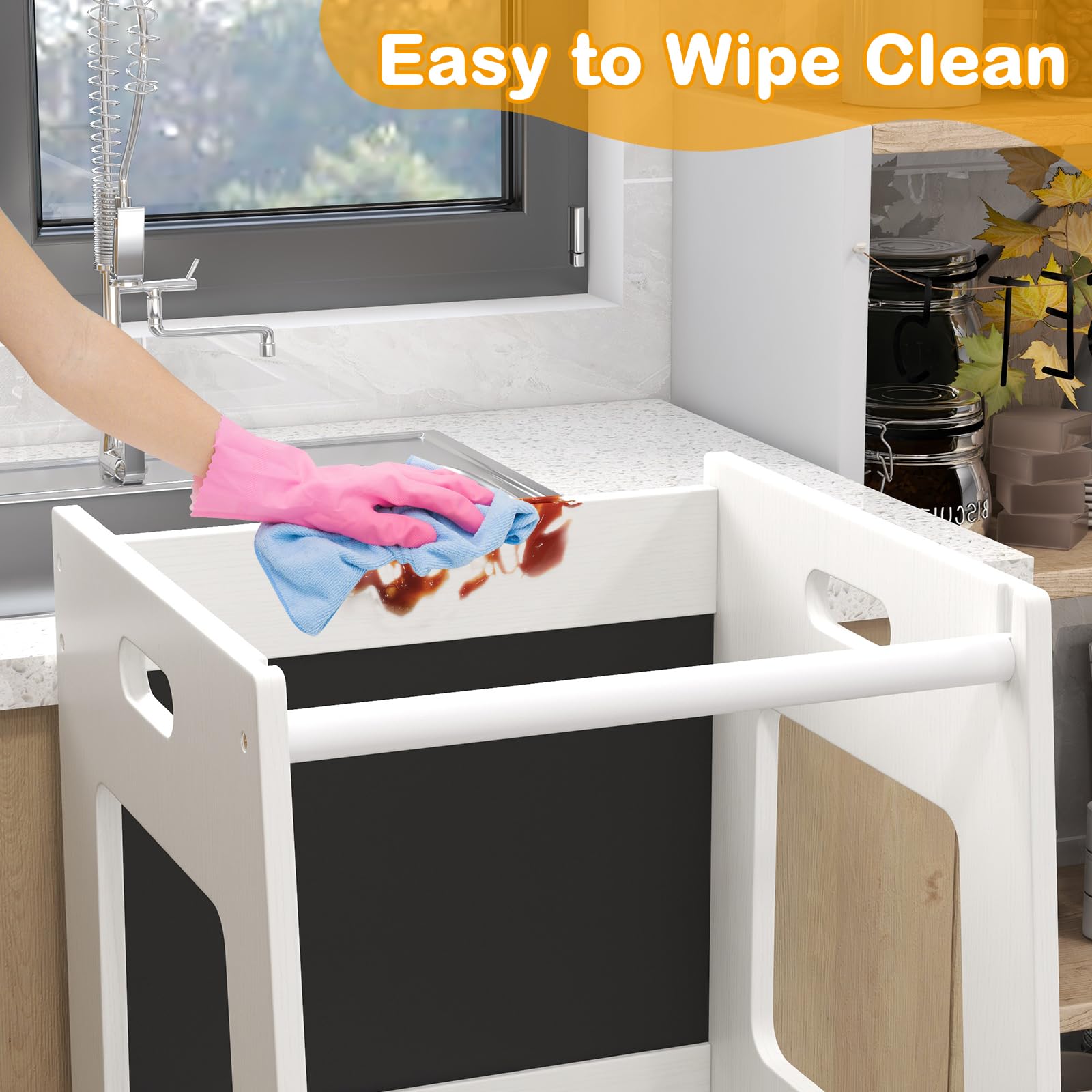 This versatile learning tower is designed to empower child by fostering independence and creativity. With 2 adjustable heights (12inch & 15.5inch), it grows with little one, allowing them to safely reach counters, sinks, and shelves. The built-in blackboard adds a fun twist, encouraging creative expression while they help with household tasks like cooking or brushing their teeth. The sturdy frame supports up to 133 pounds, offering peace of mind with every use. Whether at home in the kitchen, bathroom, or playroom, this toddler kitchen stool helper provides the perfect balance of safety, durability, and fun. It’s the ideal companion to help child gain confidence while exploring the world around them.