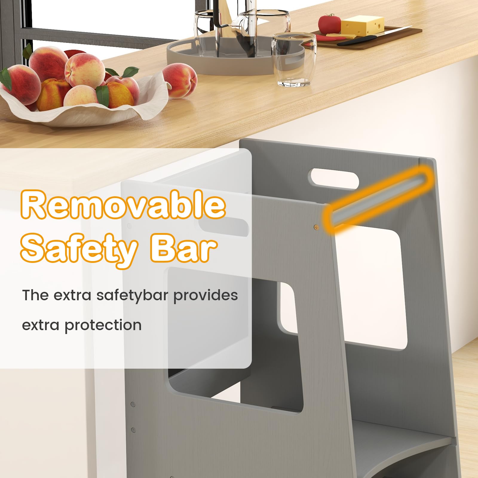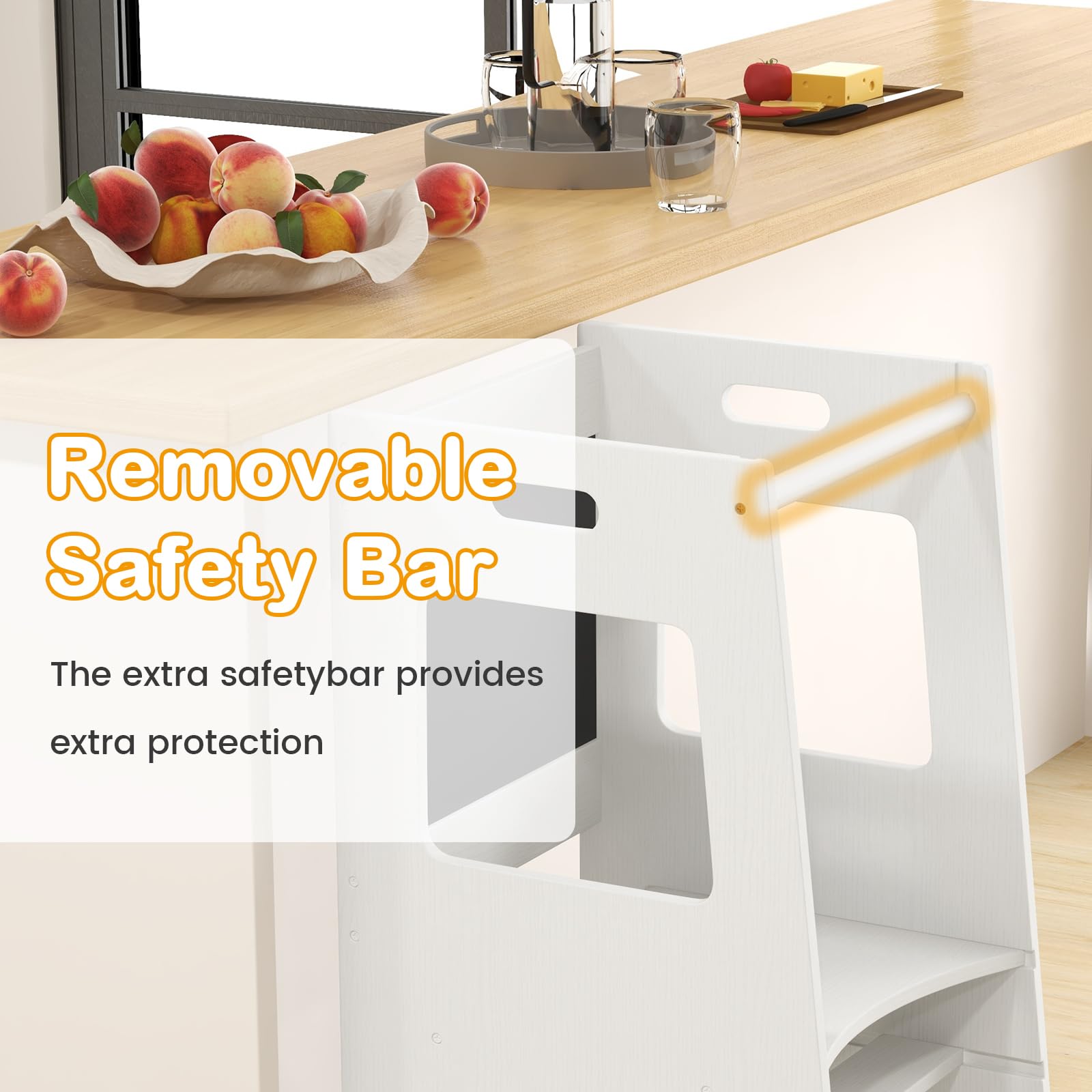 - Safe Design Details: This kids Montessori learning helper is designed with stable trapezoidal structure, a removable safety rail and 2 anti-tipping feet to reduce the risk of injury to children. The widen platform and hidden reinforced screws also ensure little ones safety.