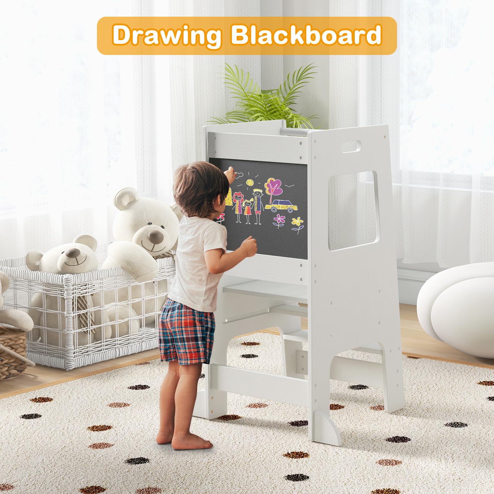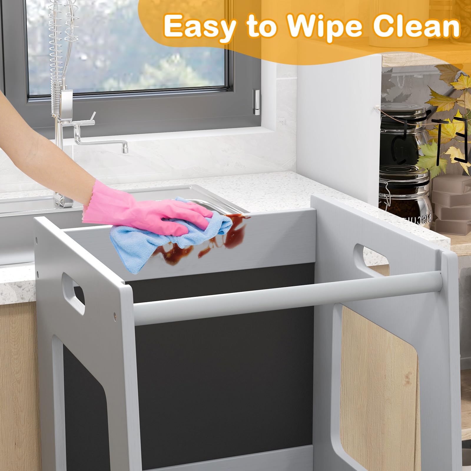- Blackboard for Creative Play: This step stool features a fun and functional built-in blackboard, offering child endless opportunities to express their creativity. While standing safely on the toddler kitchen stool , they can draw, doodle, or practice writing, turning everyday moments into creative playtime.